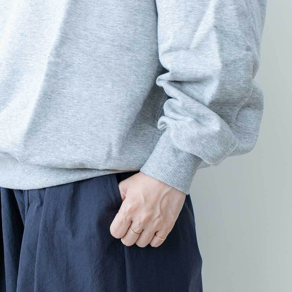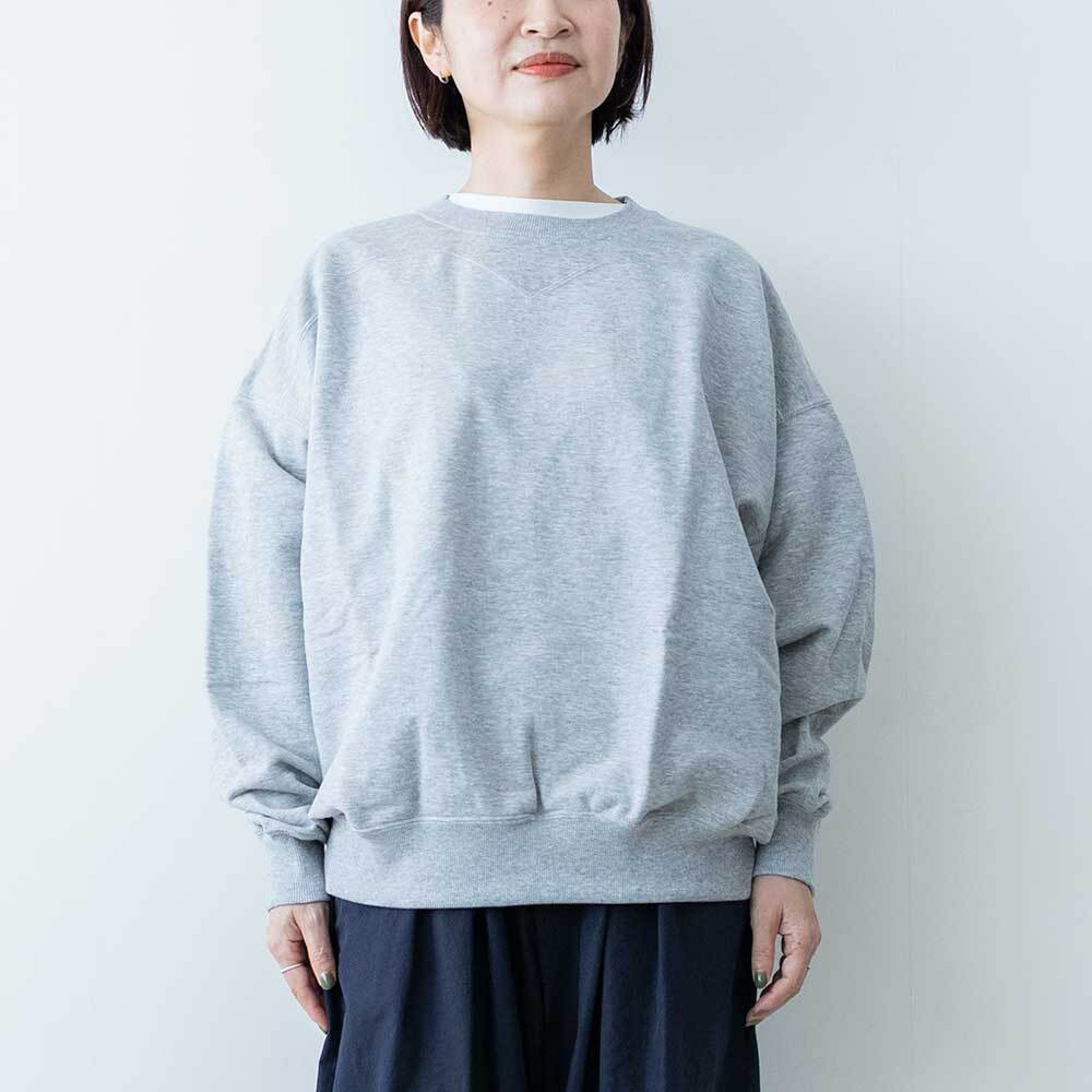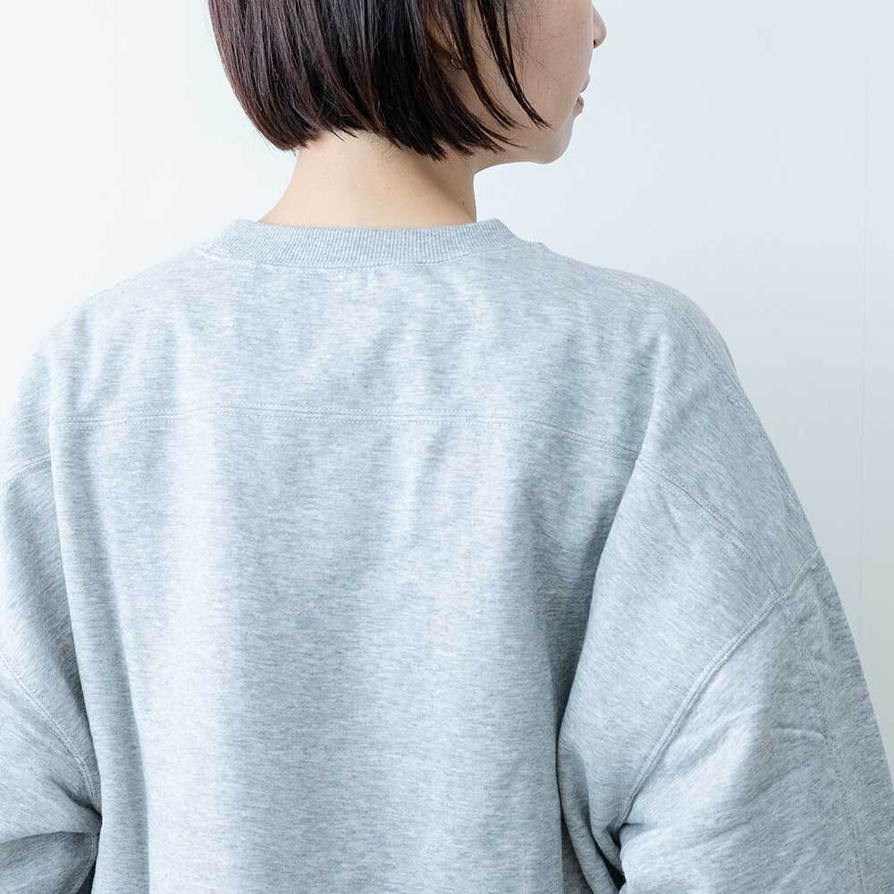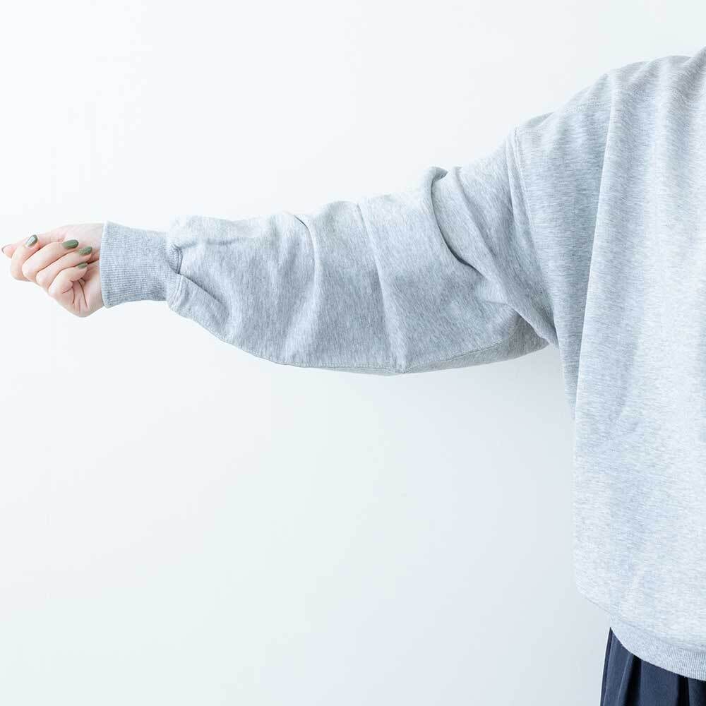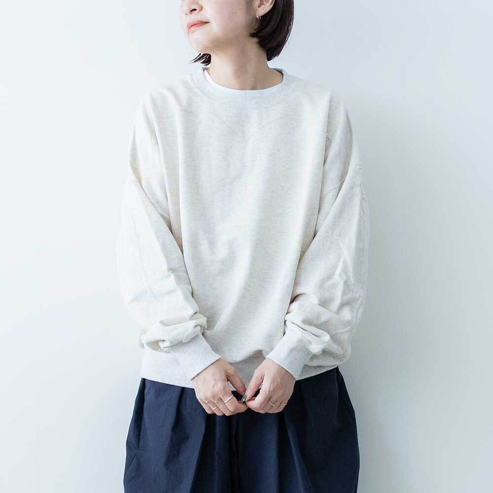袖の切替えで立体感を演出し、肩幅身幅にゆとりを入れたクルーネックスウェットです。