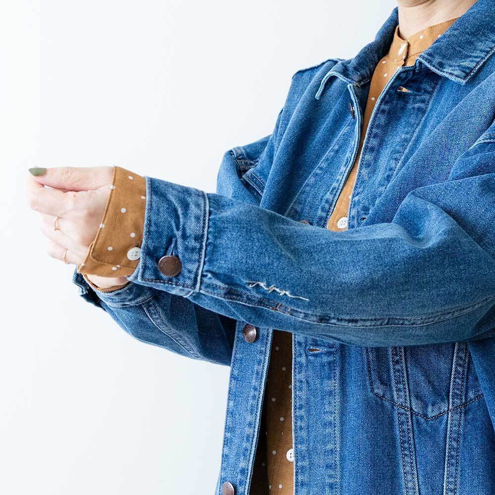 やや長めの着丈なのでインナーを選ばず、バランスの良い着こなしに仕上げてくれます。