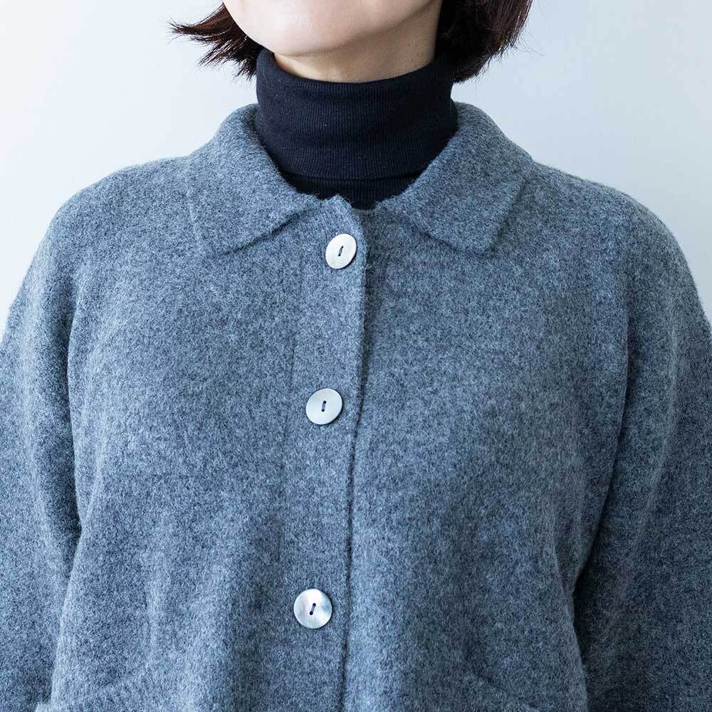 立体感のある独特な表情が魅力の襟付きショートカーディガンです。ソフトな肌ざわりで着心地が良く、空気を含みやすく保温性に優れるアイテムで、寒さの増す秋冬ニットアイテムとしてお勧め。フロントボタンの襟付き型のカーディガンは気温の変化にも役立つアイテムです。色々なアイテムにコーディネート可能。ポケット付。ウォッシャブル対応でシワになりにくく型崩れしにくいのでお洗濯がしやすいのもポイントです。