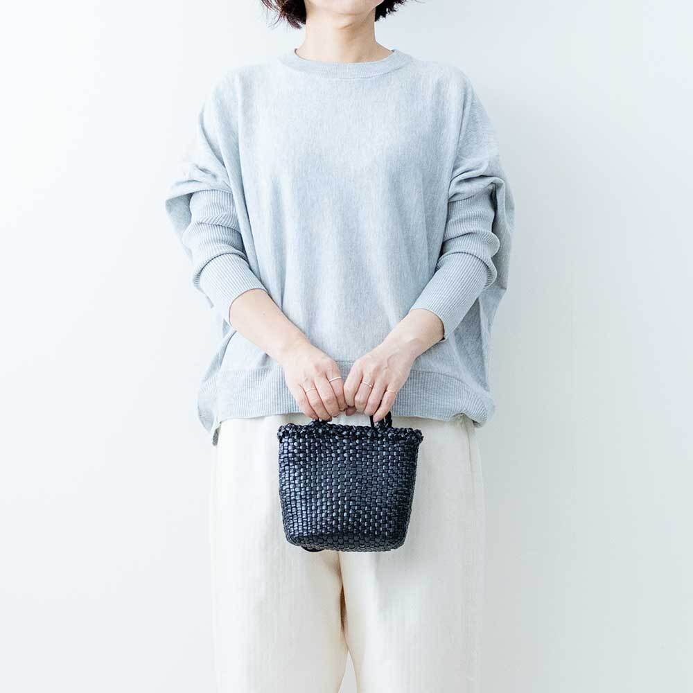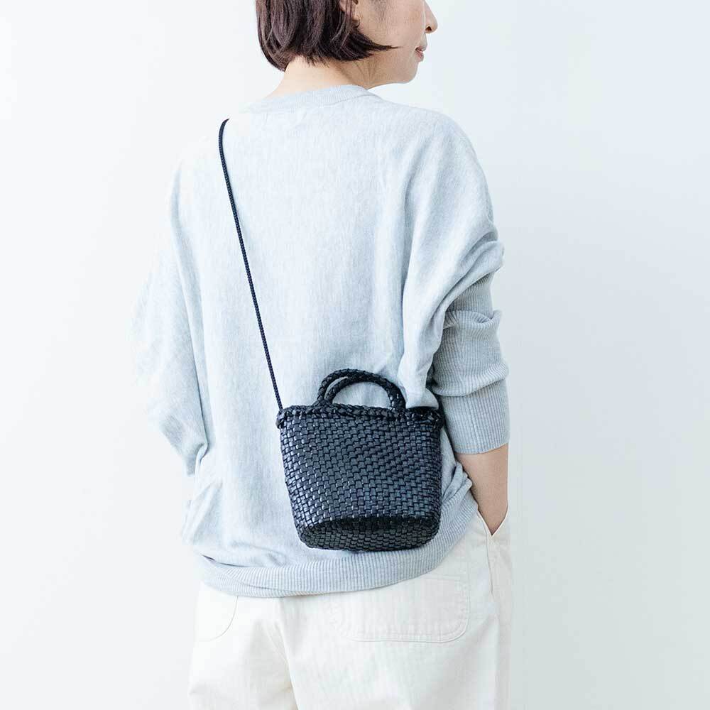 牛革を丁寧に編み込んだミニバッグでショルダーと手持ちの2WAY仕様になっています。