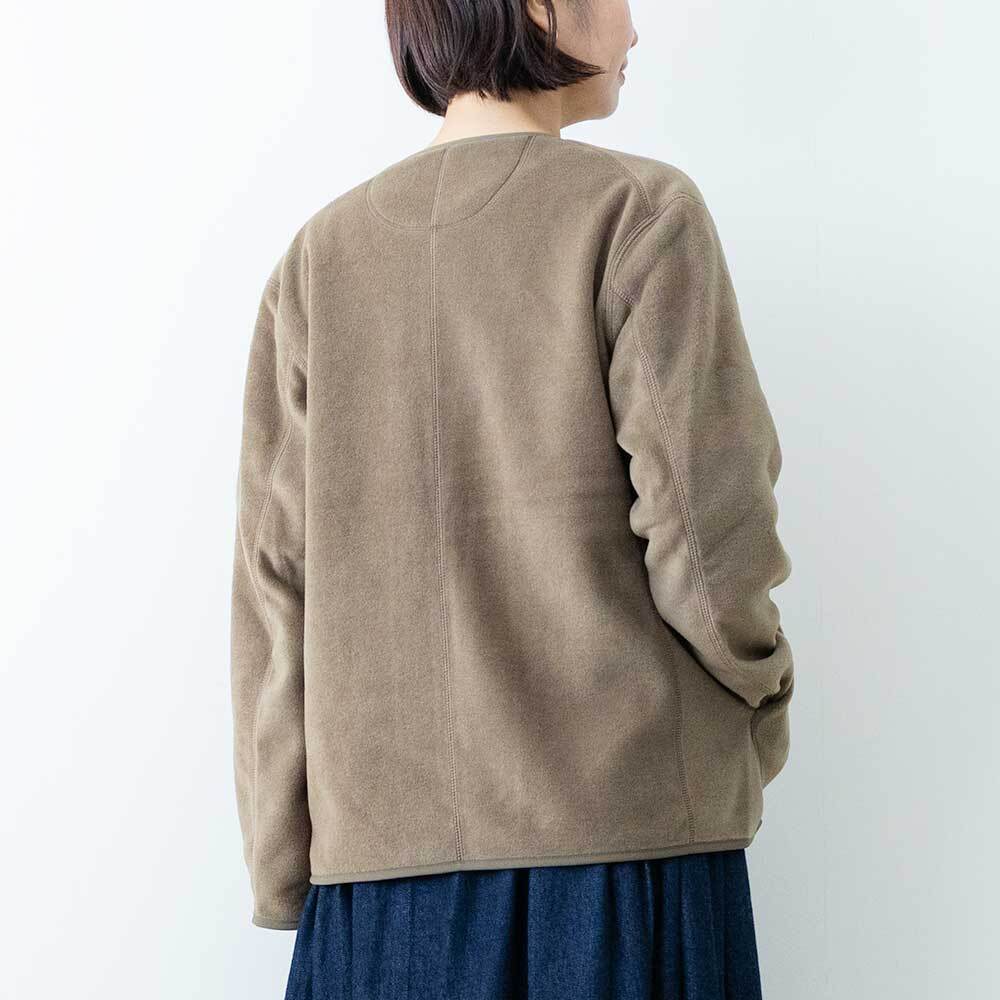 スナップボタン開閉なので、カーディガンのように室内でも気軽に羽織れる万能アイテムです。