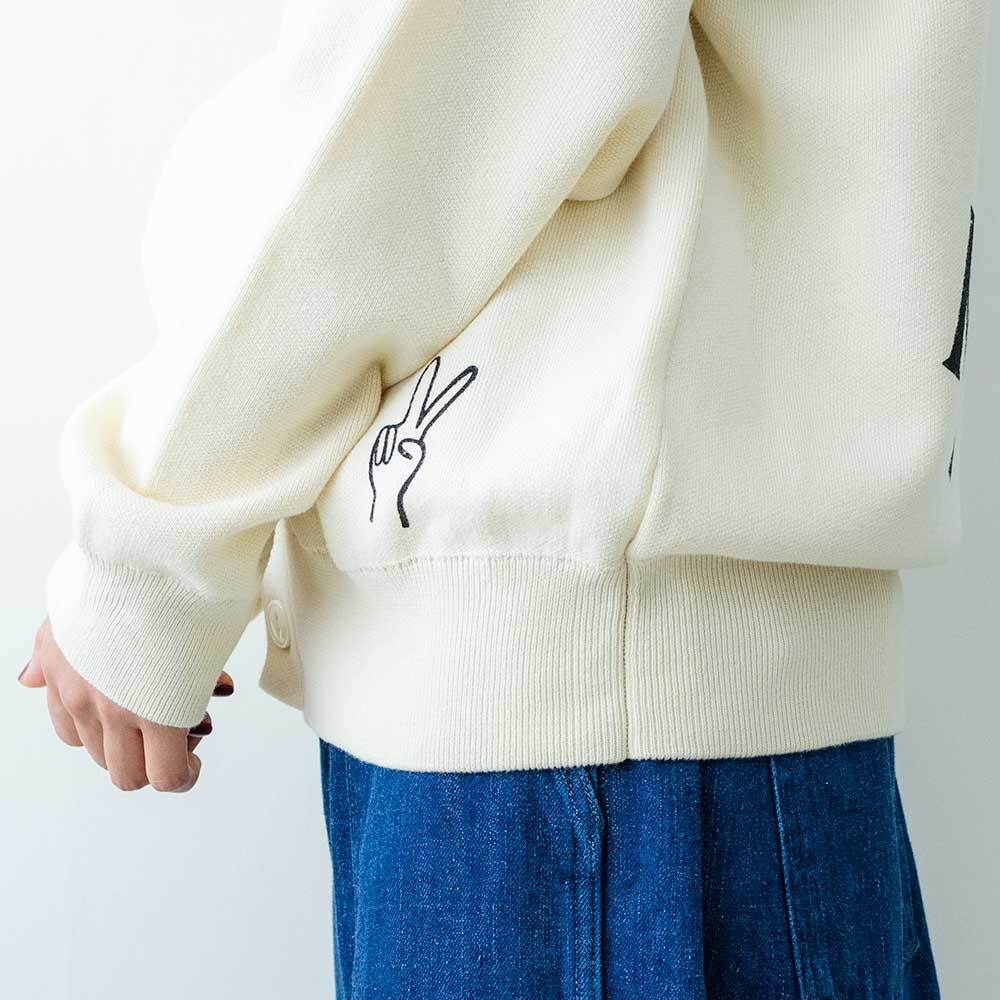 ポップでヒッピーなプリントが特徴的なニットカーディガンです。