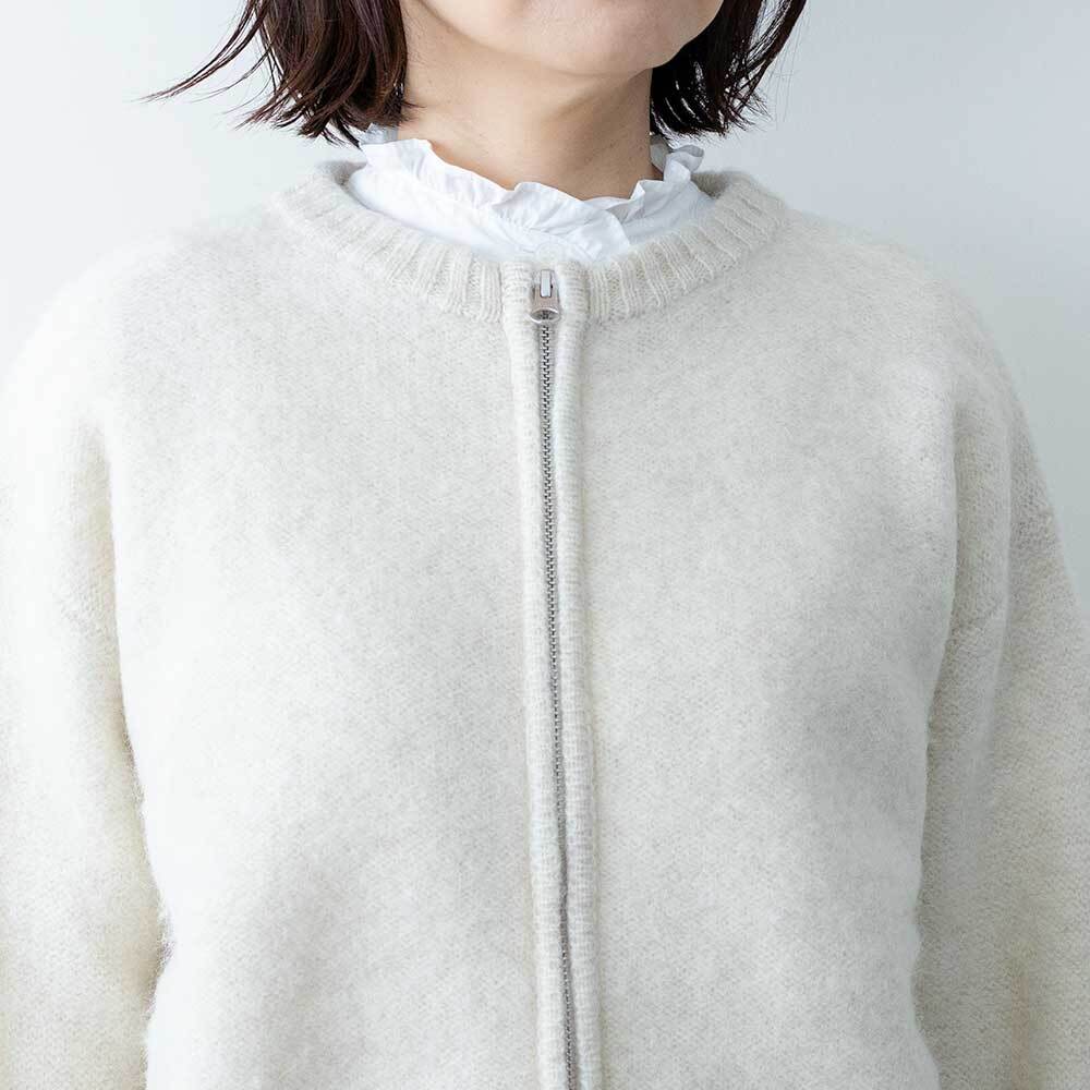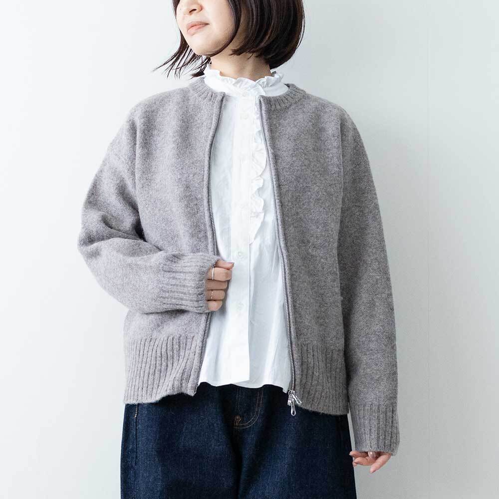 RWS WOOLを使用した編地に圧縮をかけたダブルジップクルーネックブルゾンです。