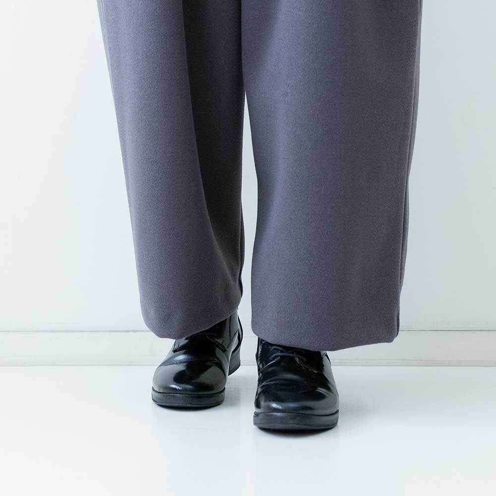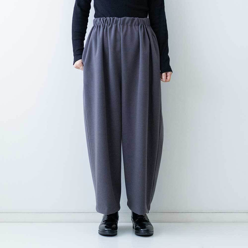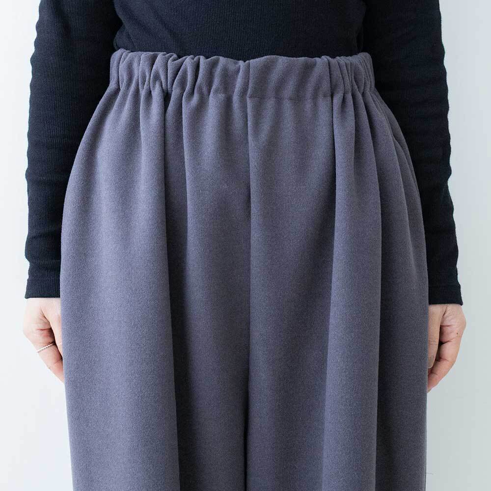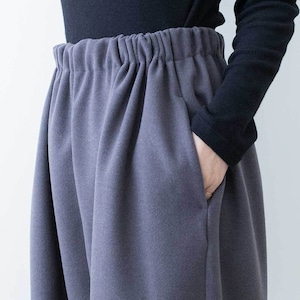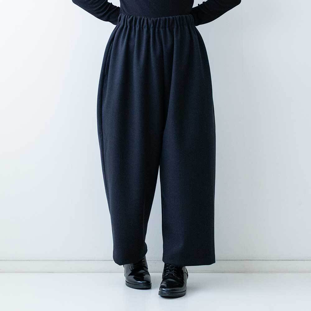 裏なしでもチクチクしなく吸湿発熱の機能もある素材なので寒い季節にあたたかく過ごしていただけます。ウエストはリラックス感のあるゴム使用、クロップド丈なのでブーツ合わせなどもおススメです。