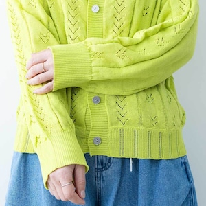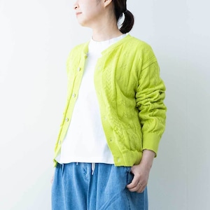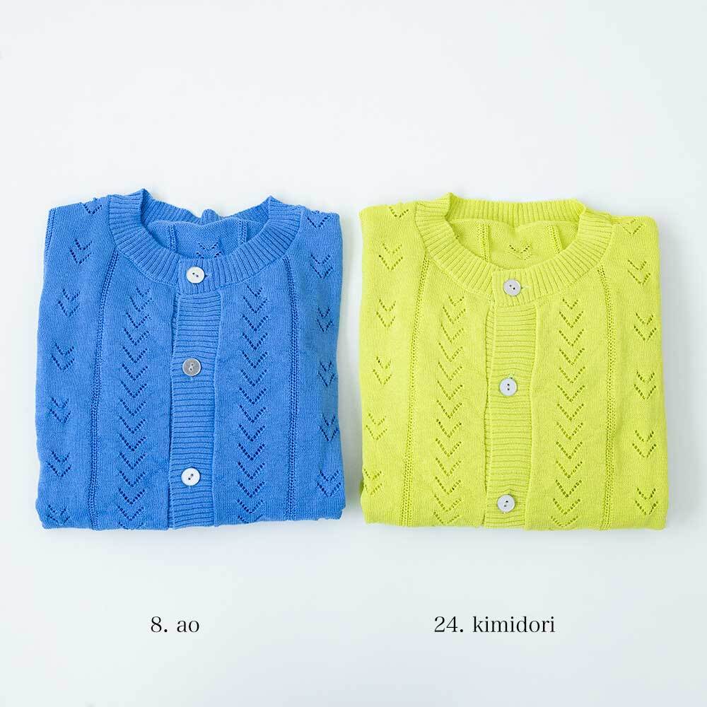 リネンのようなドライタッチな風合いの糸で仕立てたカーディガンです。