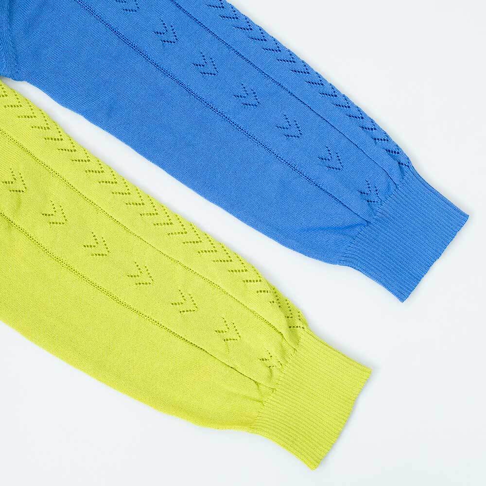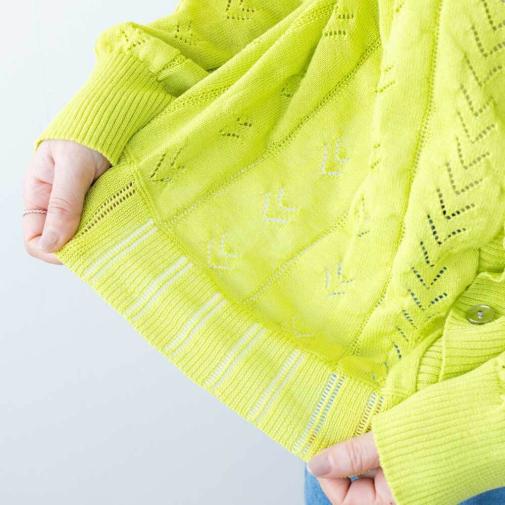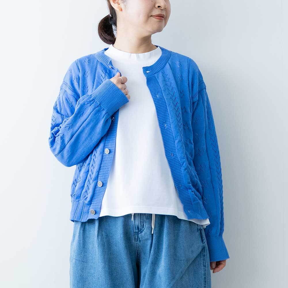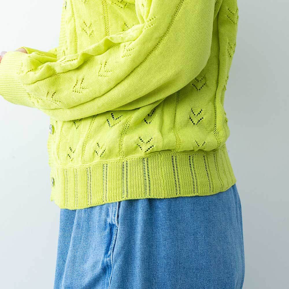 アイレット柄でほんのり透け感もあり、春らしい着こなしができます。目を引くあざやかなカラーですが形はベーシックなので使い勝手は十分です。