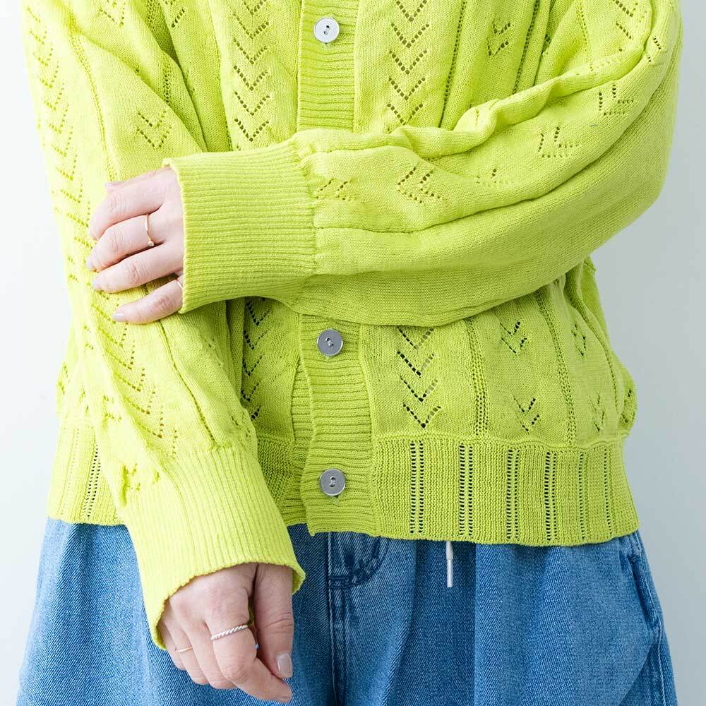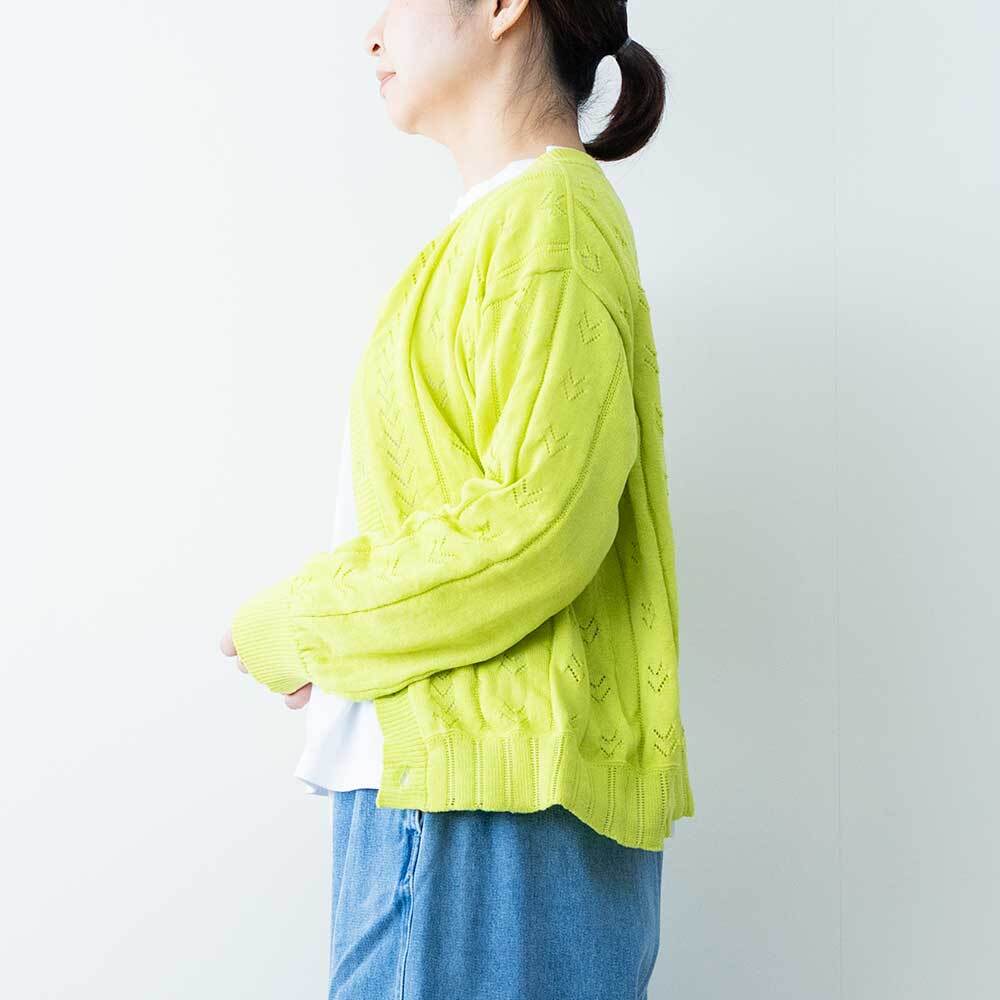 FIL DE FER リネンライクポリ アイレット柄カーデ