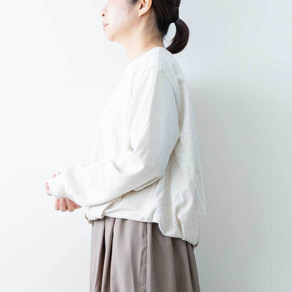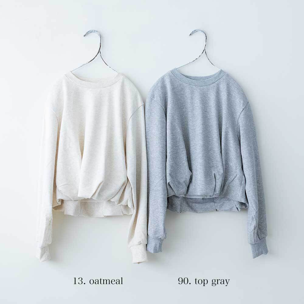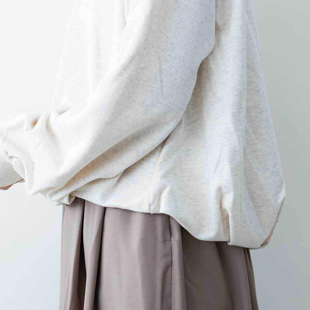 裾にタックを入れ、ふんわりとしたバルーンシルエットを表現したスウェットです。