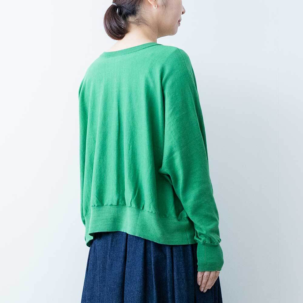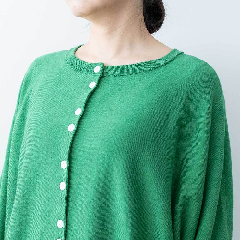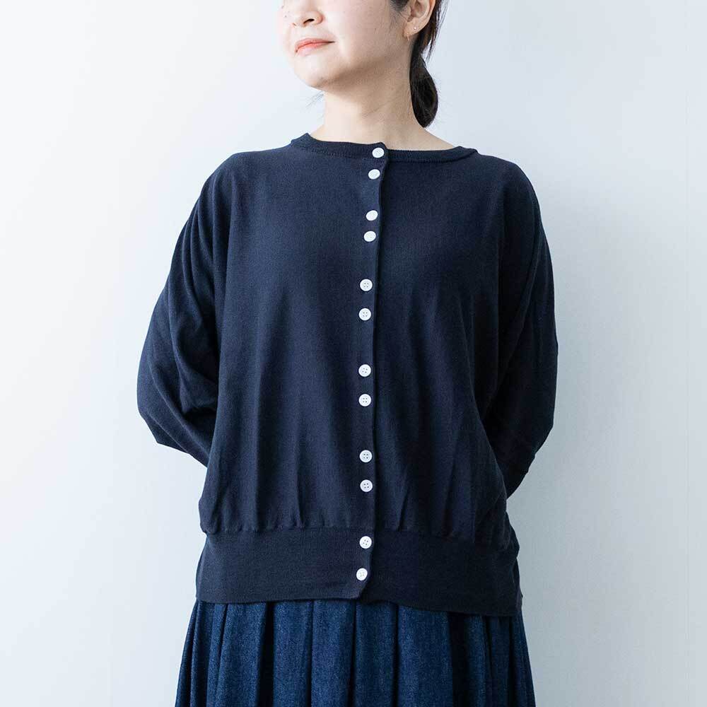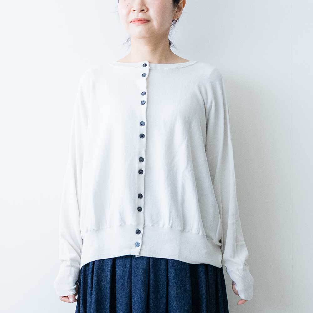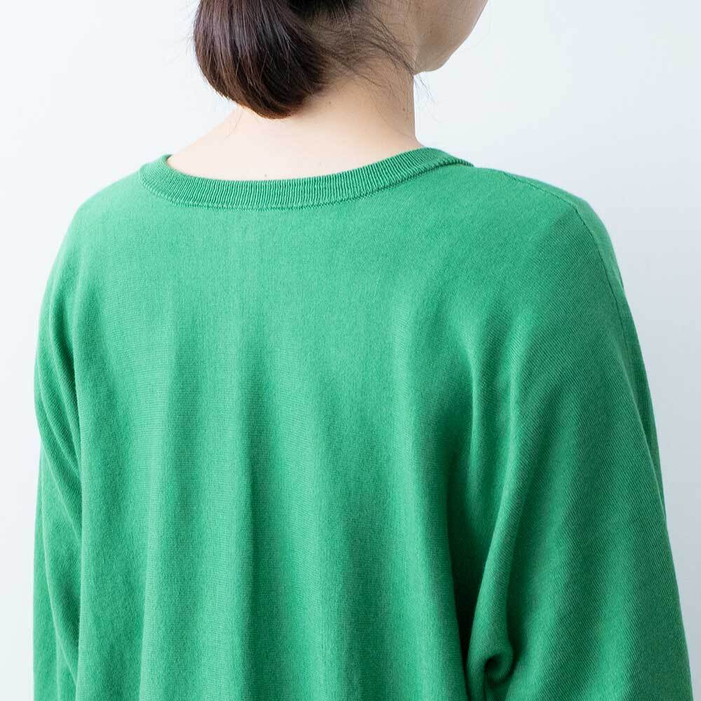 前後着用可能な2way仕様で、カーディガンとしてもお使いいただけます。ゆったりとしたドルマンスリーブで身体のラインを拾わず、ほどよい落ち感があるので女性らしい華奢なシルエットを強調してくれます。