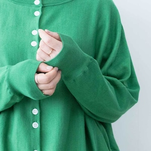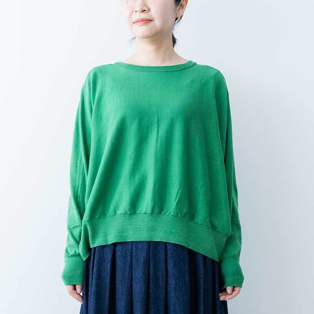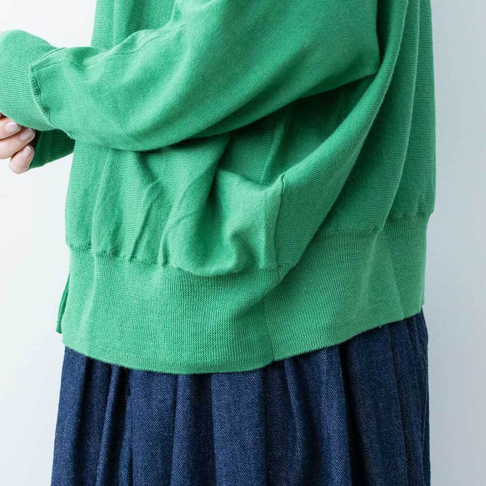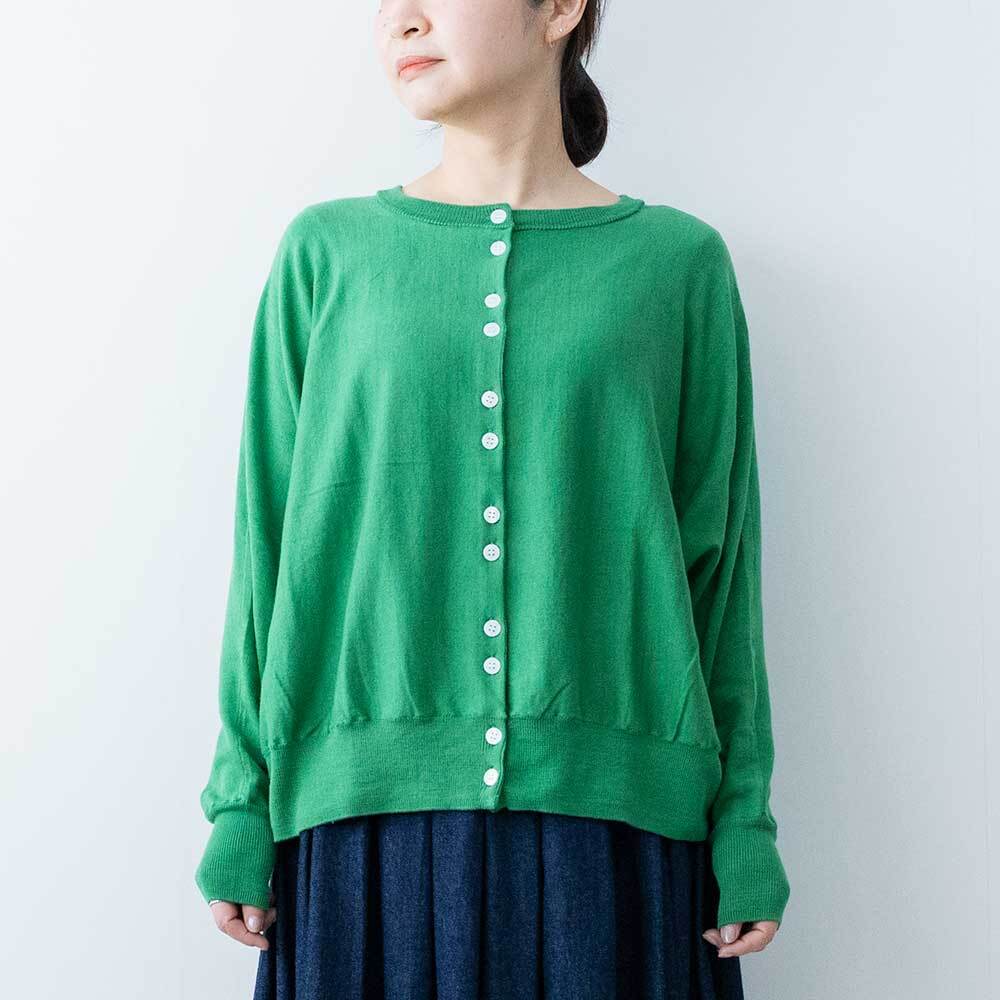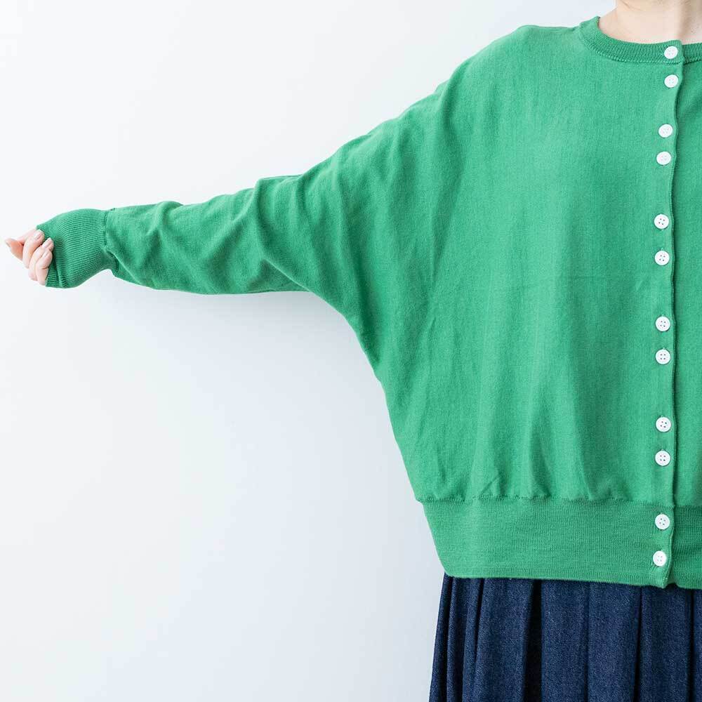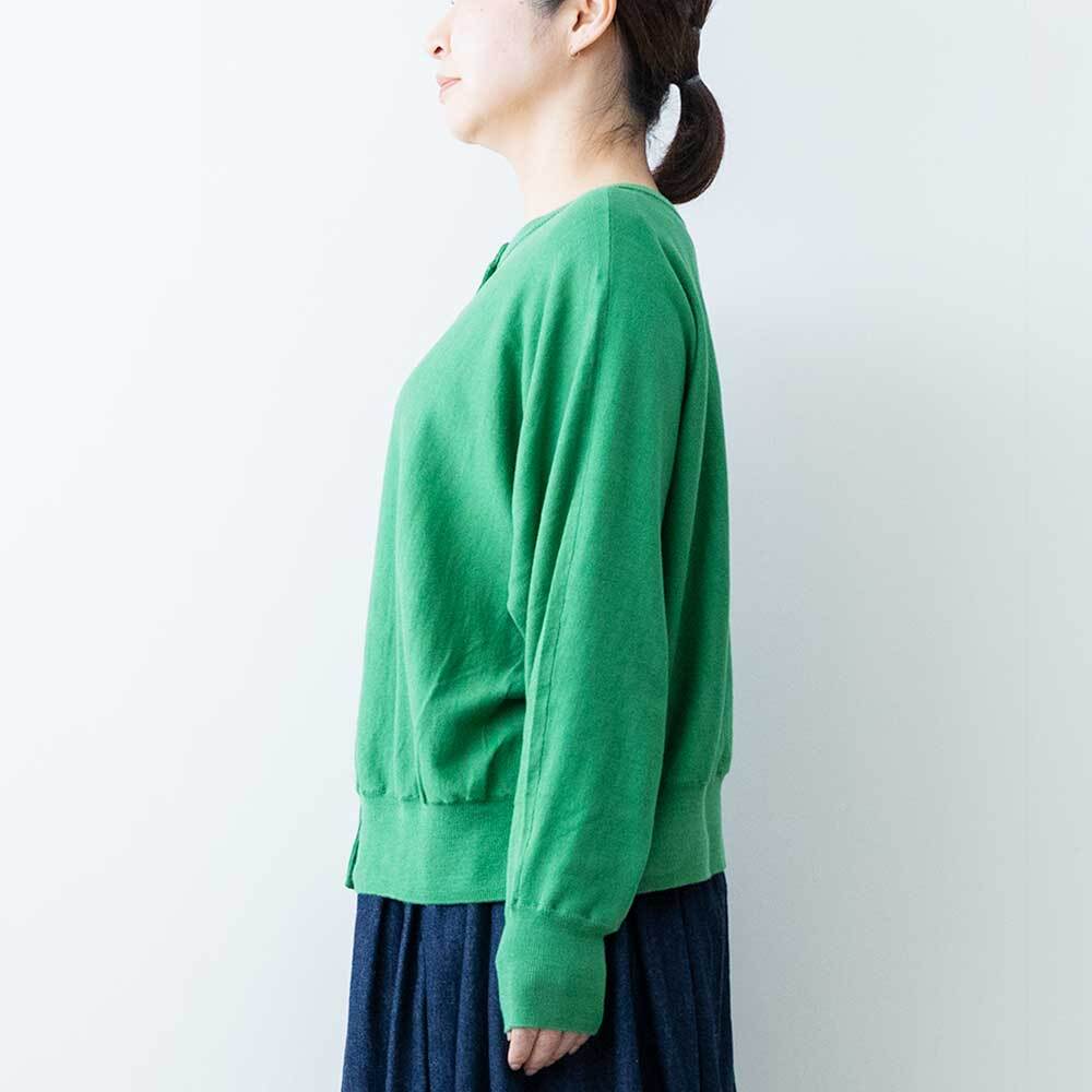 前後着用可能な2way仕様で、カーディガンとしてもお使いいただけます。ゆったりとしたドルマンスリーブで身体のラインを拾わず、ほどよい落ち感があるので女性らしい華奢なシルエットを強調してくれます。