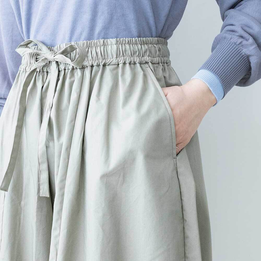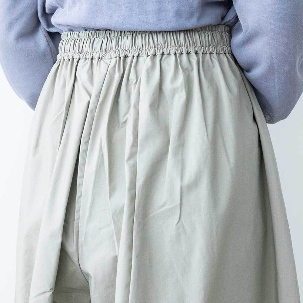 ひざ下から丸みのある形になっており、足元で溜まるデザインがポイントです。タイプライターの軽い素材を使用しており、暑い季節でも軽やかに着用いただけます。