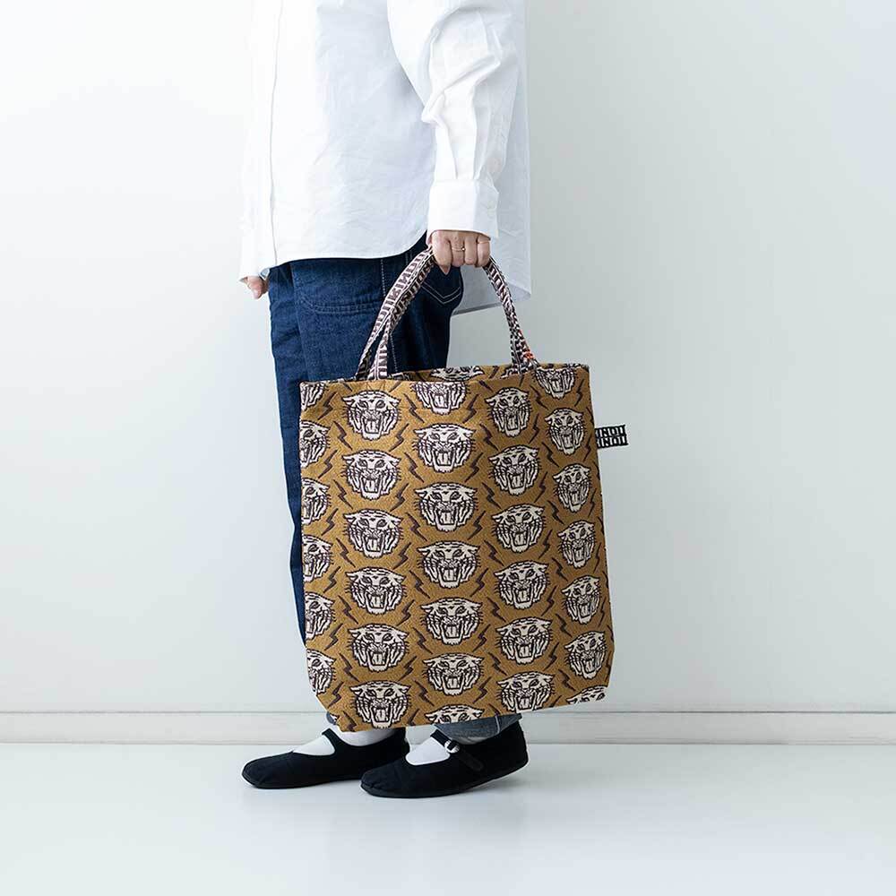 目を惹くデザインのトラ柄ジャガードトートバッグです。