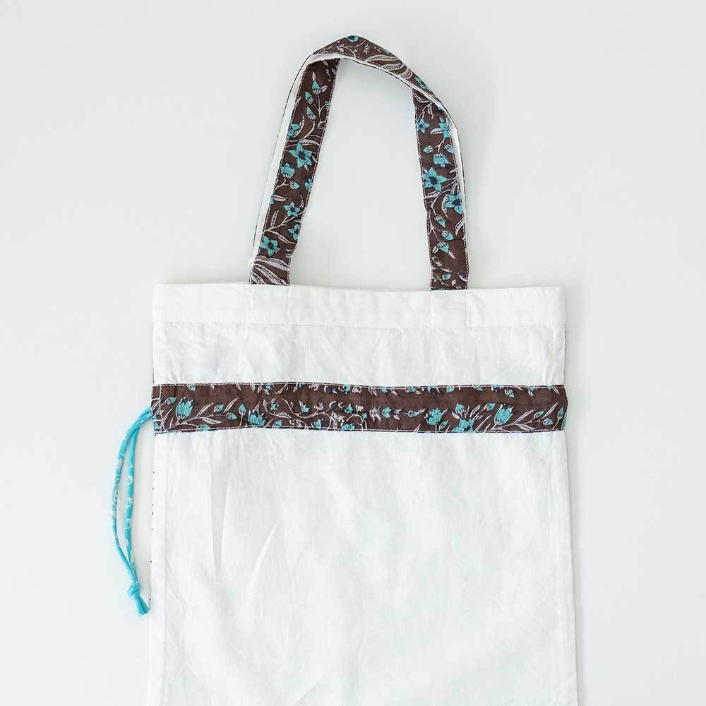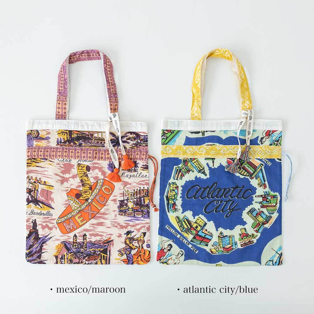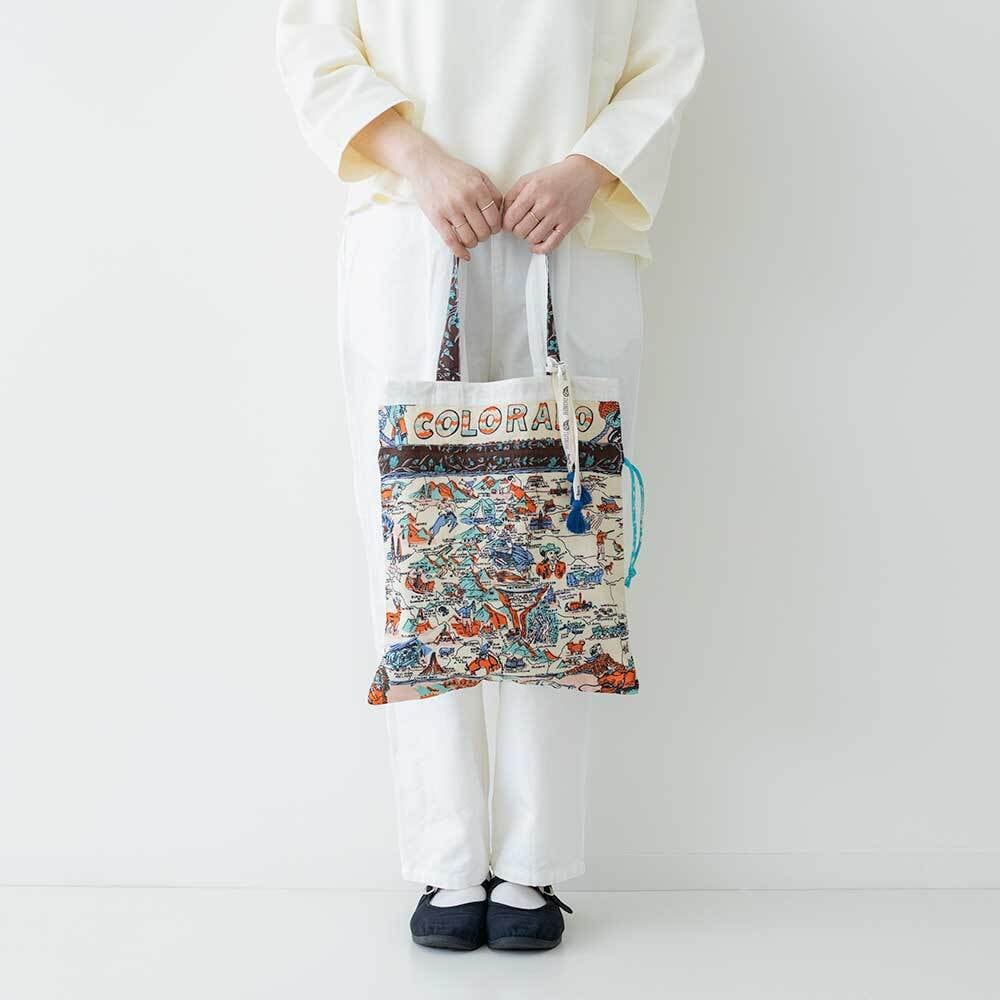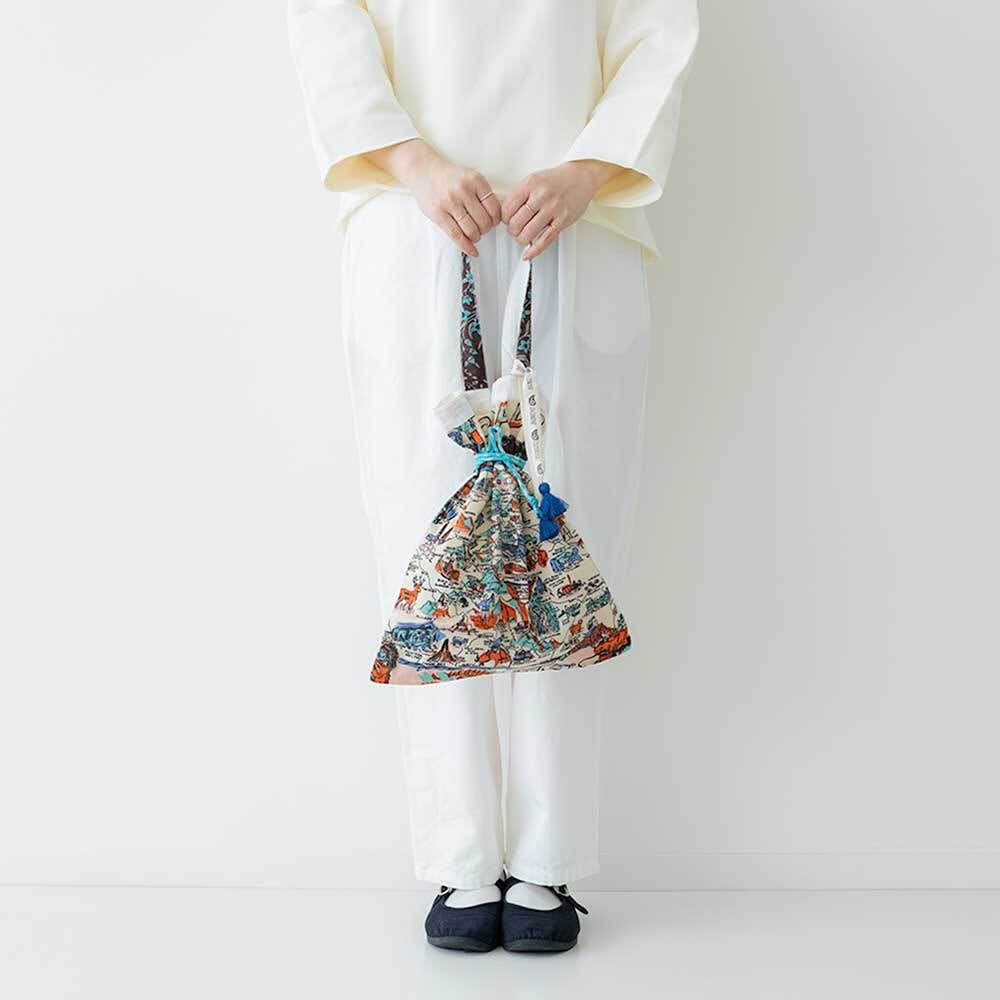 トートですが絞れるので巾着型にもなります。サブバッグやインバッグとしてもおすすめ。多用途で便利にお使いいただけます。