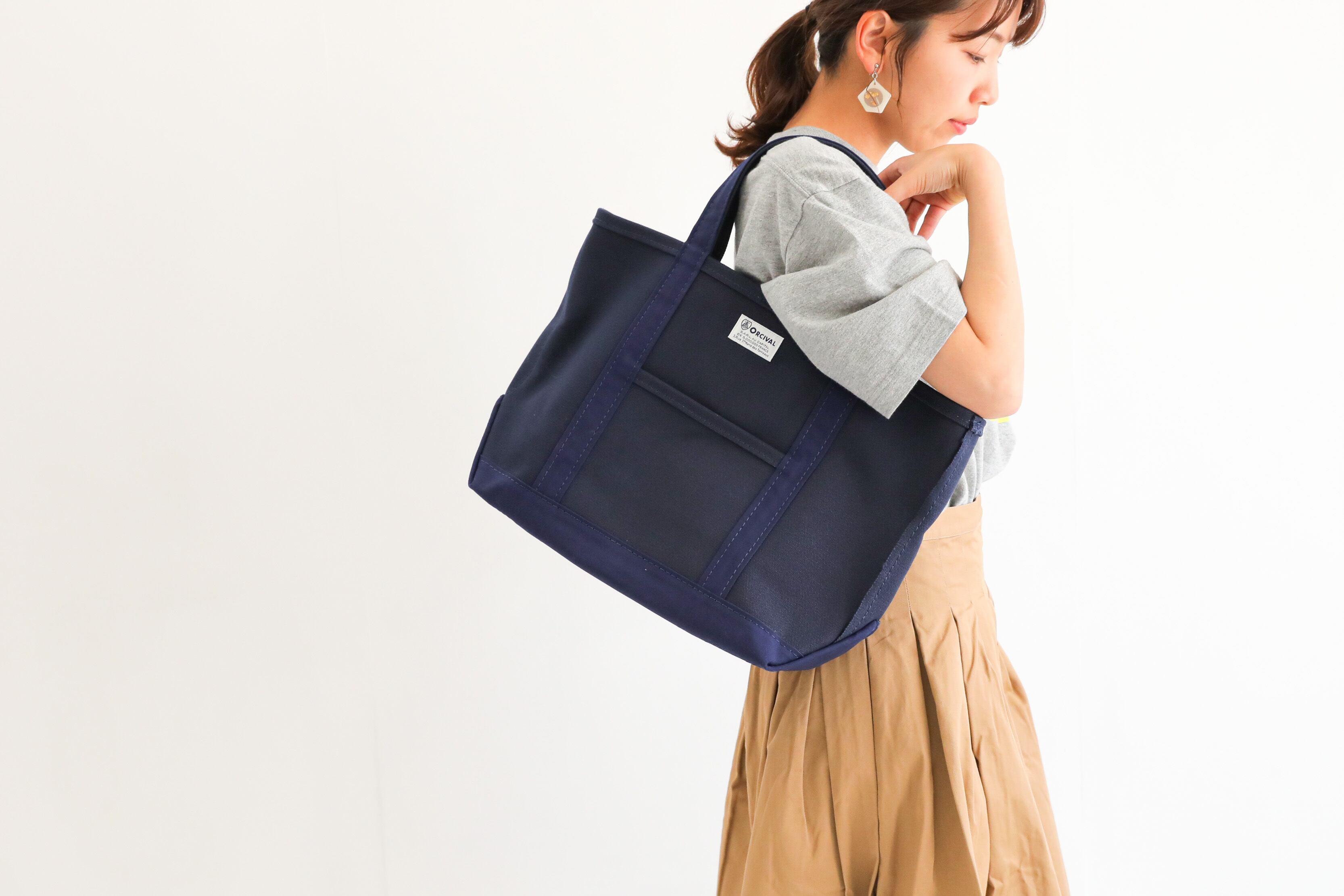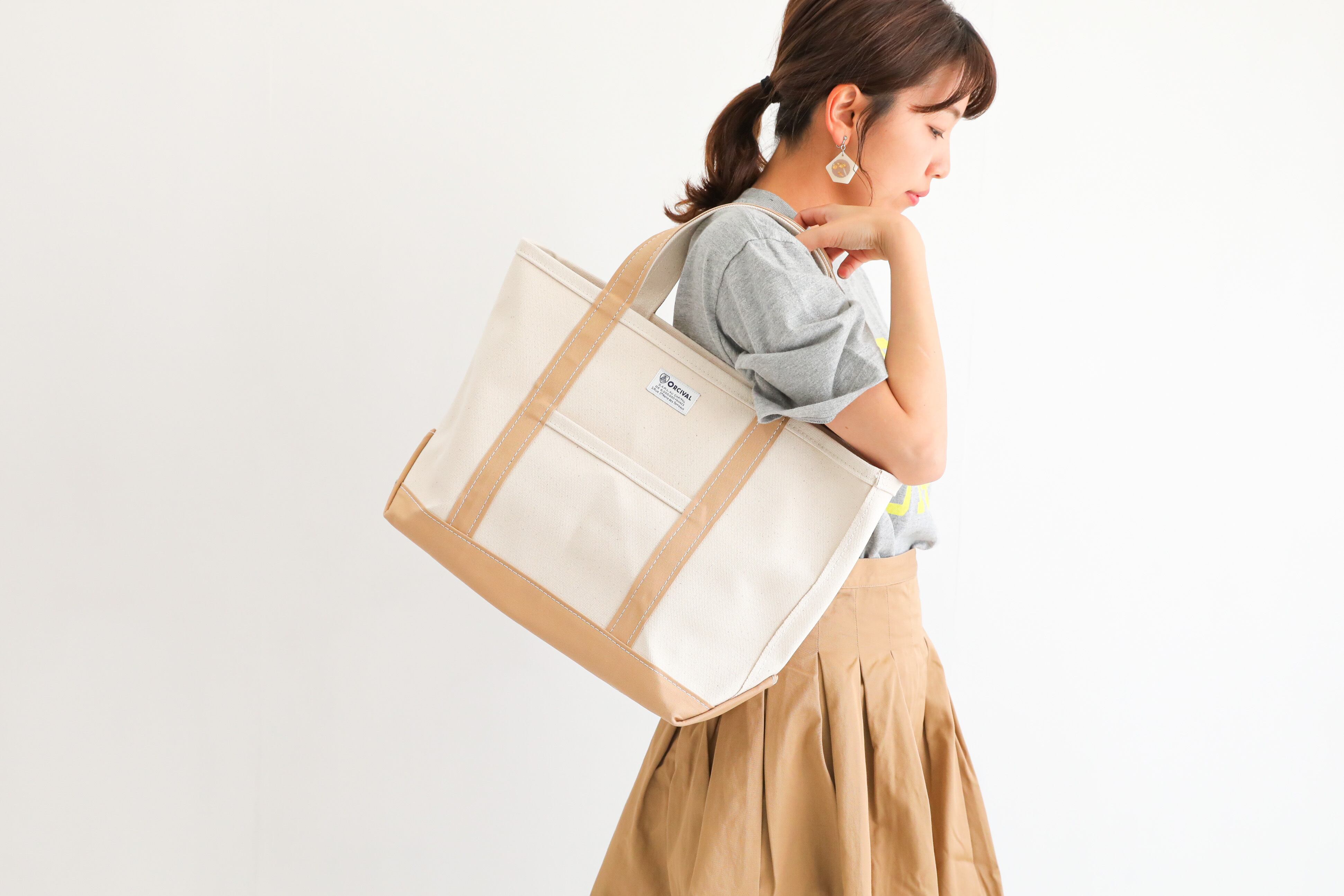 バッグが自立するほどのハリを持った、丈夫な24オンスのキャンバス素材を