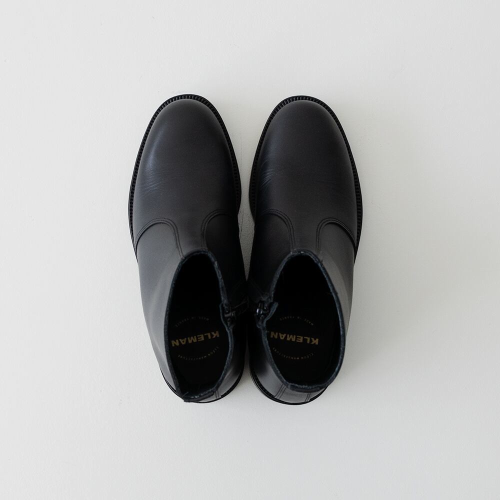 KLEMANから新作のブーツが入荷しました。シンプルで無駄のないデザインでパンツ、スカートなど幅広く合わせて頂けます。上質な牛革を使用し足馴染みも良く、内側のジップで脱ぎ履きもしやすいデザインです。ソールにはクッション性のあるラバー素材を使用し、滑りにくく雨の日でも着用可能です。