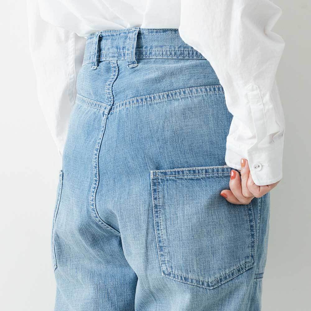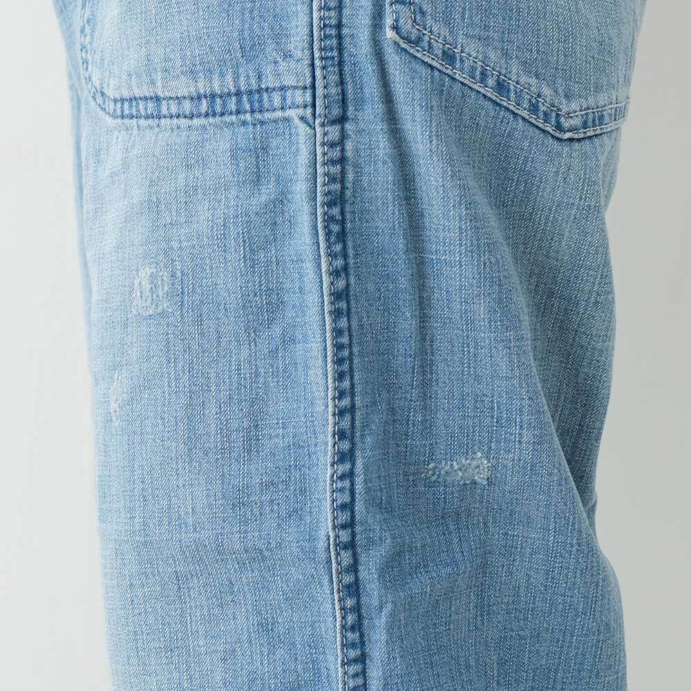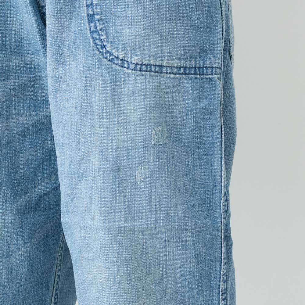 アタリやヒゲ・ダメージ加工が入り、柔らかくクタッとした質感のライトオンスデニムが心地よい風合いのパンツ。
