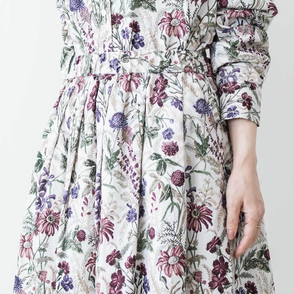 ヨーロッパのアンティークゴブラン織りを綿ブロードにプリントで落とし込んだ別注生地を使用したスカート。
