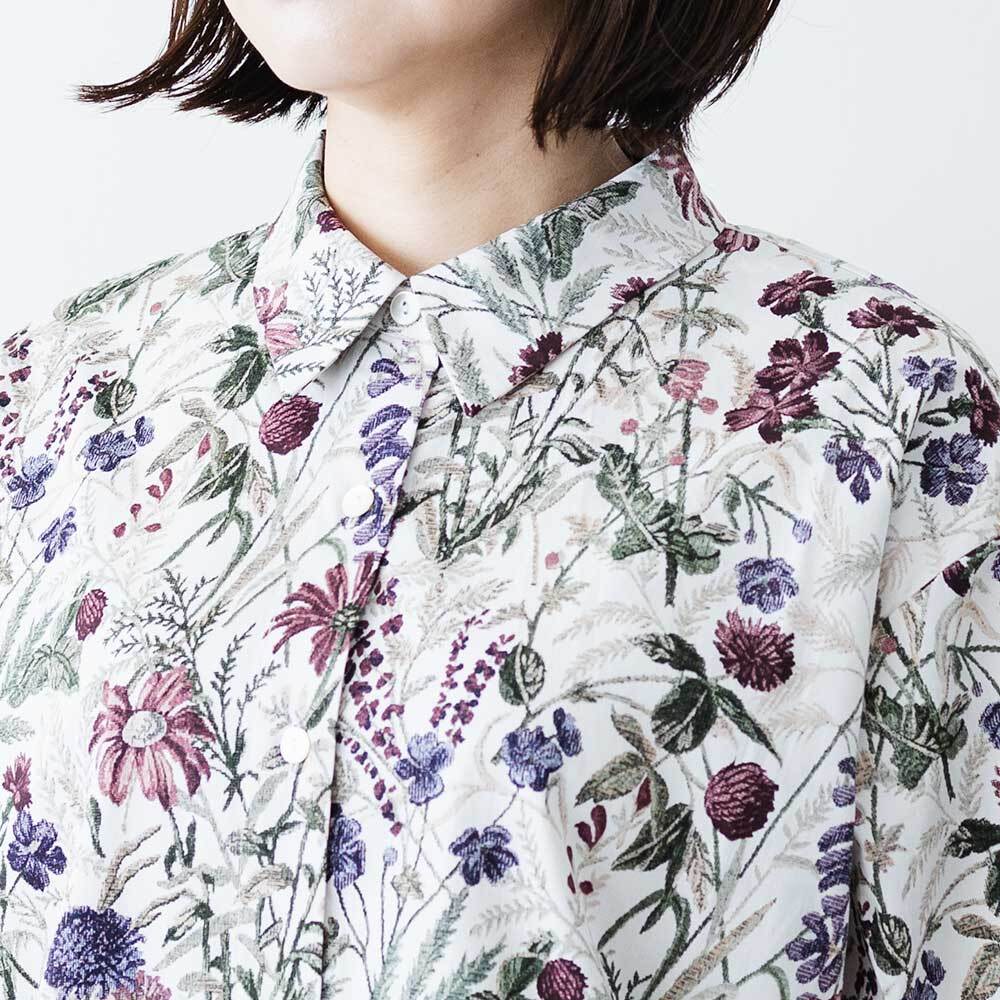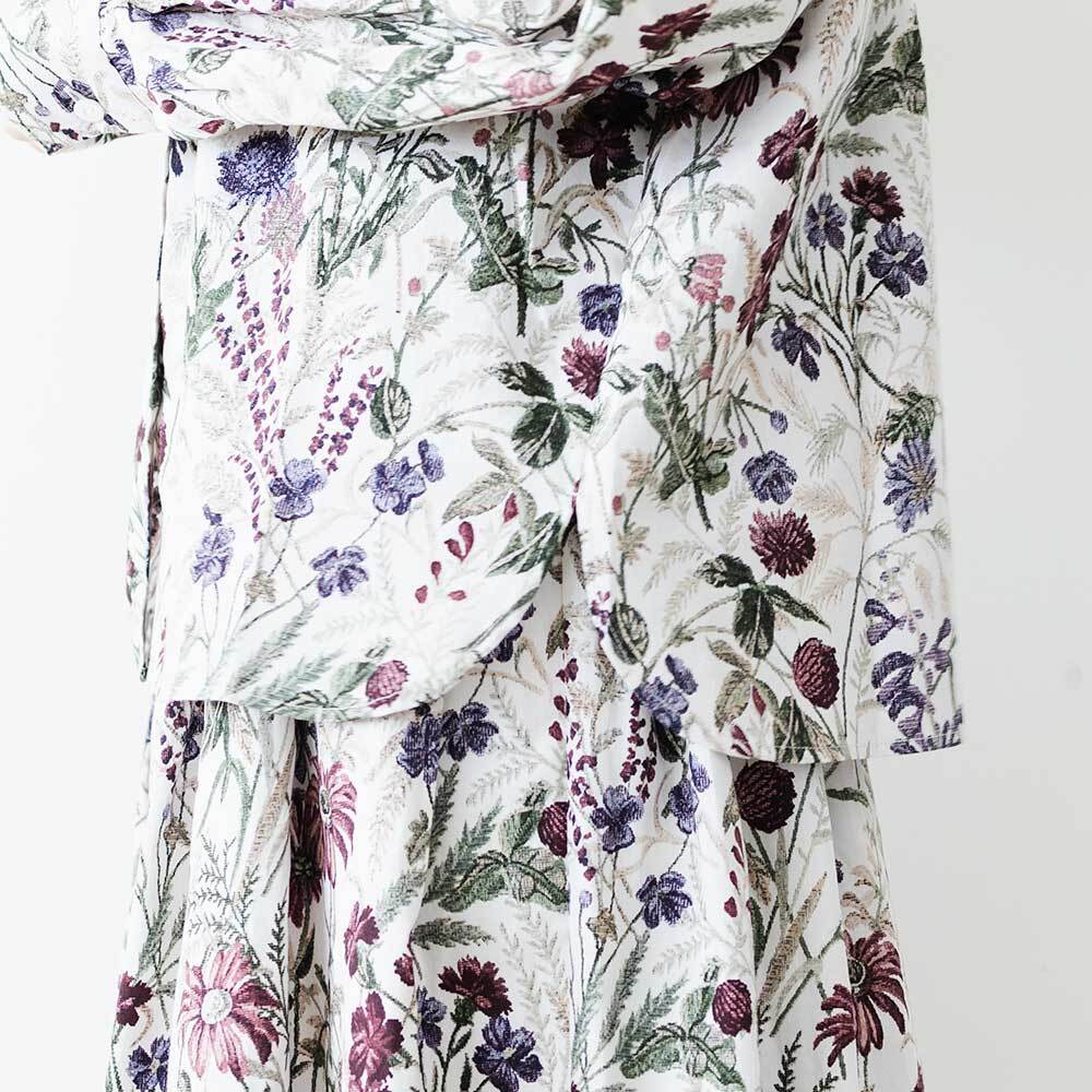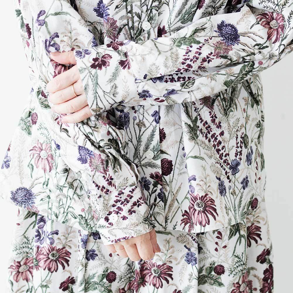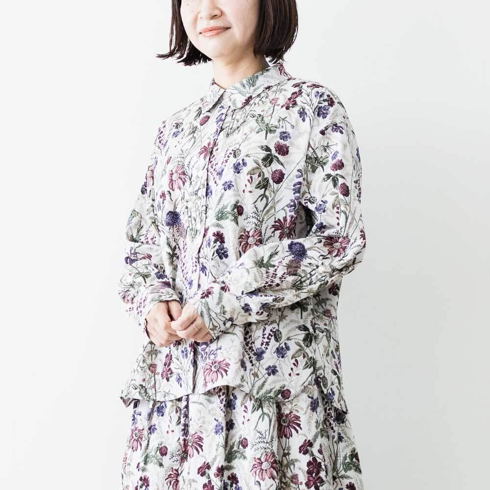 ヨーロッパのアンティークゴブラン織りを綿ブロードにプリントで落とし込んだ別注生地を使用したスカート。
