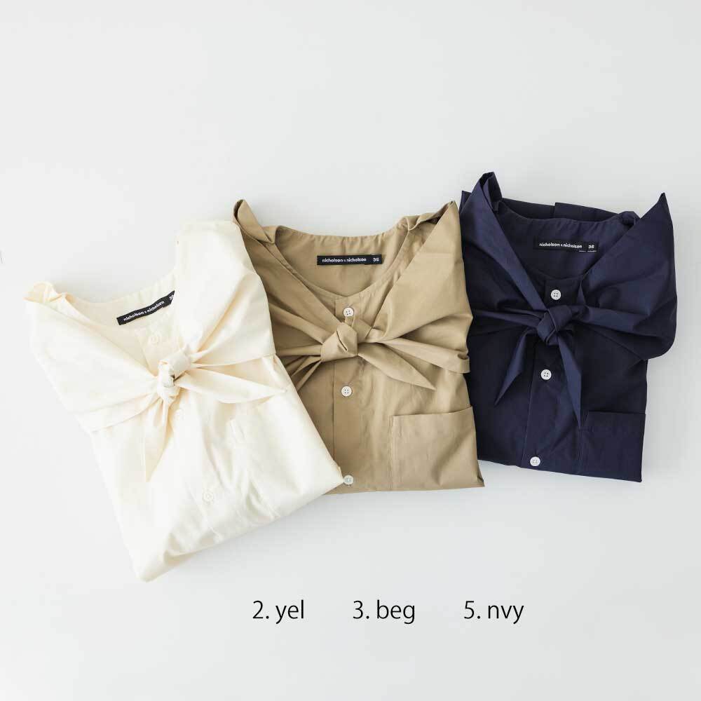 まるで同素材のスカーフを巻いているように見える、大きめのスカーフが一体化したシャツ。ゆとりある着心地がレイヤードに最適で、ニットやジャケットなどとのコーディネートのアクセントとして楽しめます。