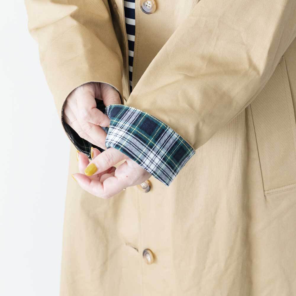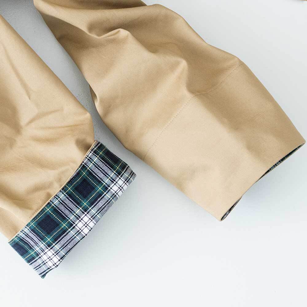 襟を立てたり、袖を曲げた際チェックがアクセントになりトラッド感を印象付けます。