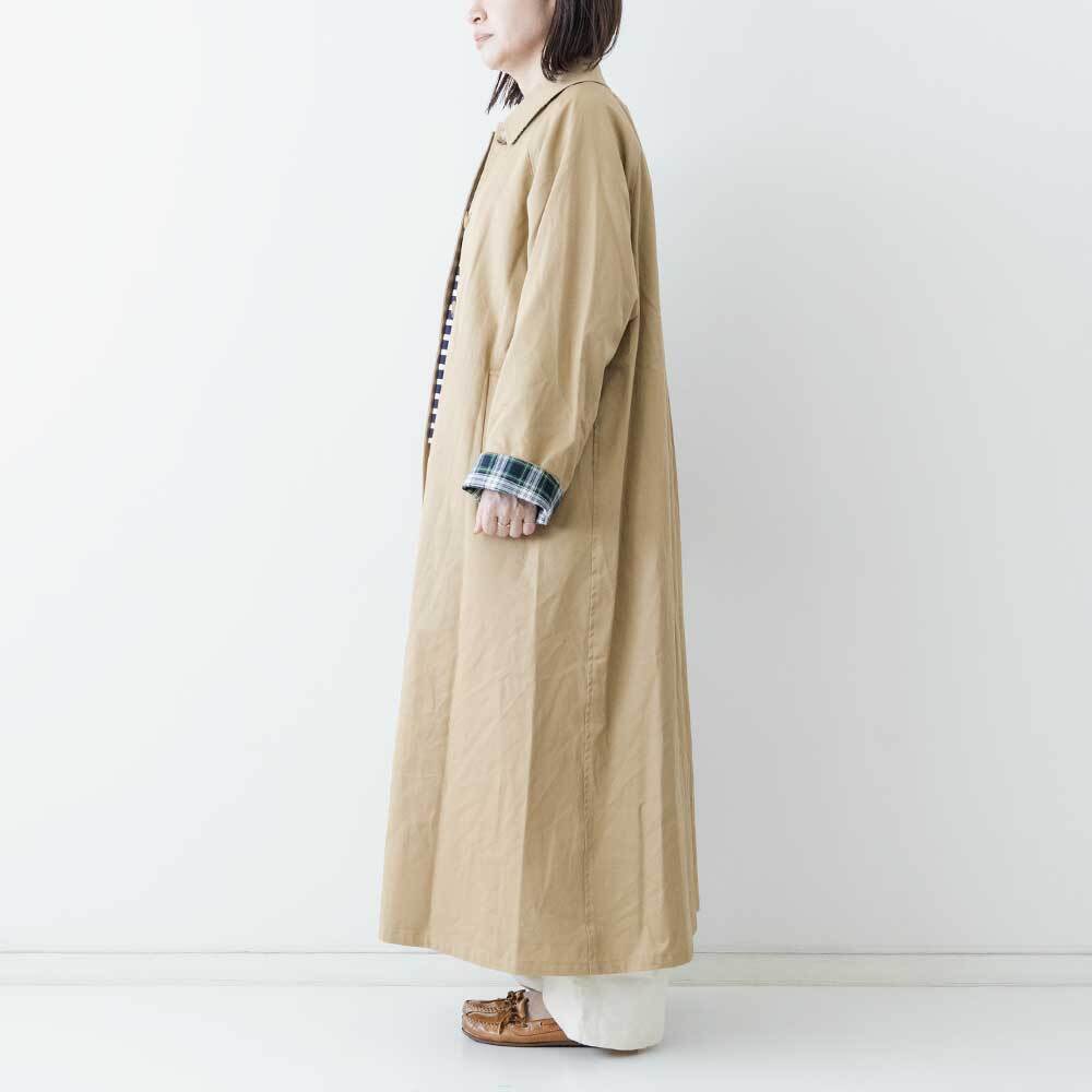 足首までのロング丈とラグランスリーブのベーシックな大人のコートです。
