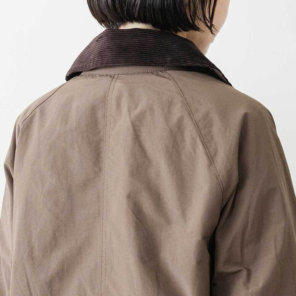 コーデュロイで温かみのある襟元は、襟を立てると首までしっかり覆うことができます。