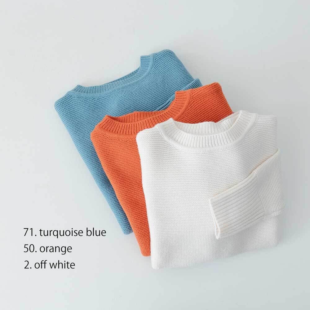 なめらかな肌触りの糸をミドルゲージで編んだラウンドヘムプルオーバー。