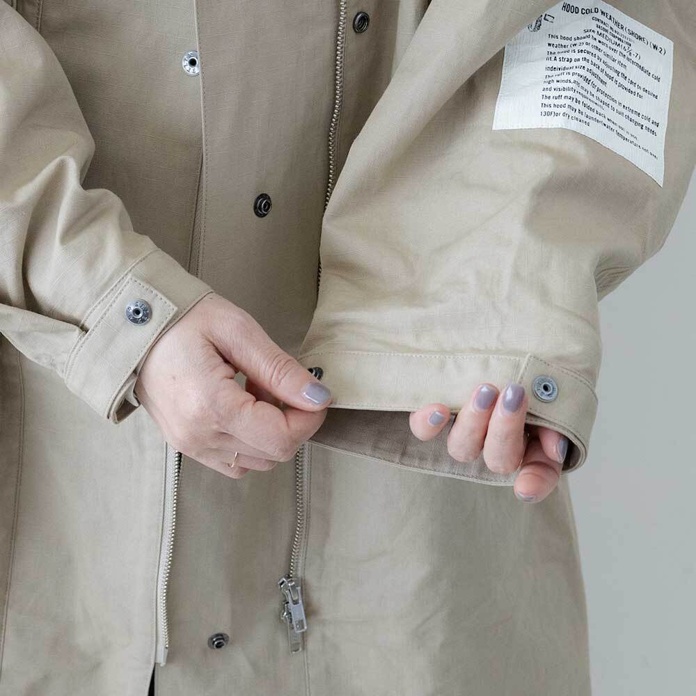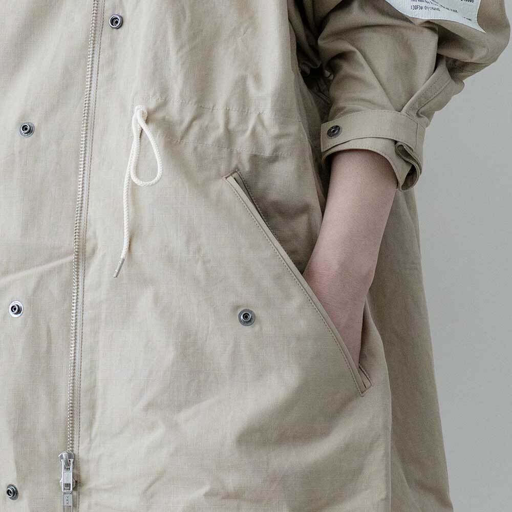 綿100%の丈夫なリップストップ素材を使用したミリタリーライトコート。