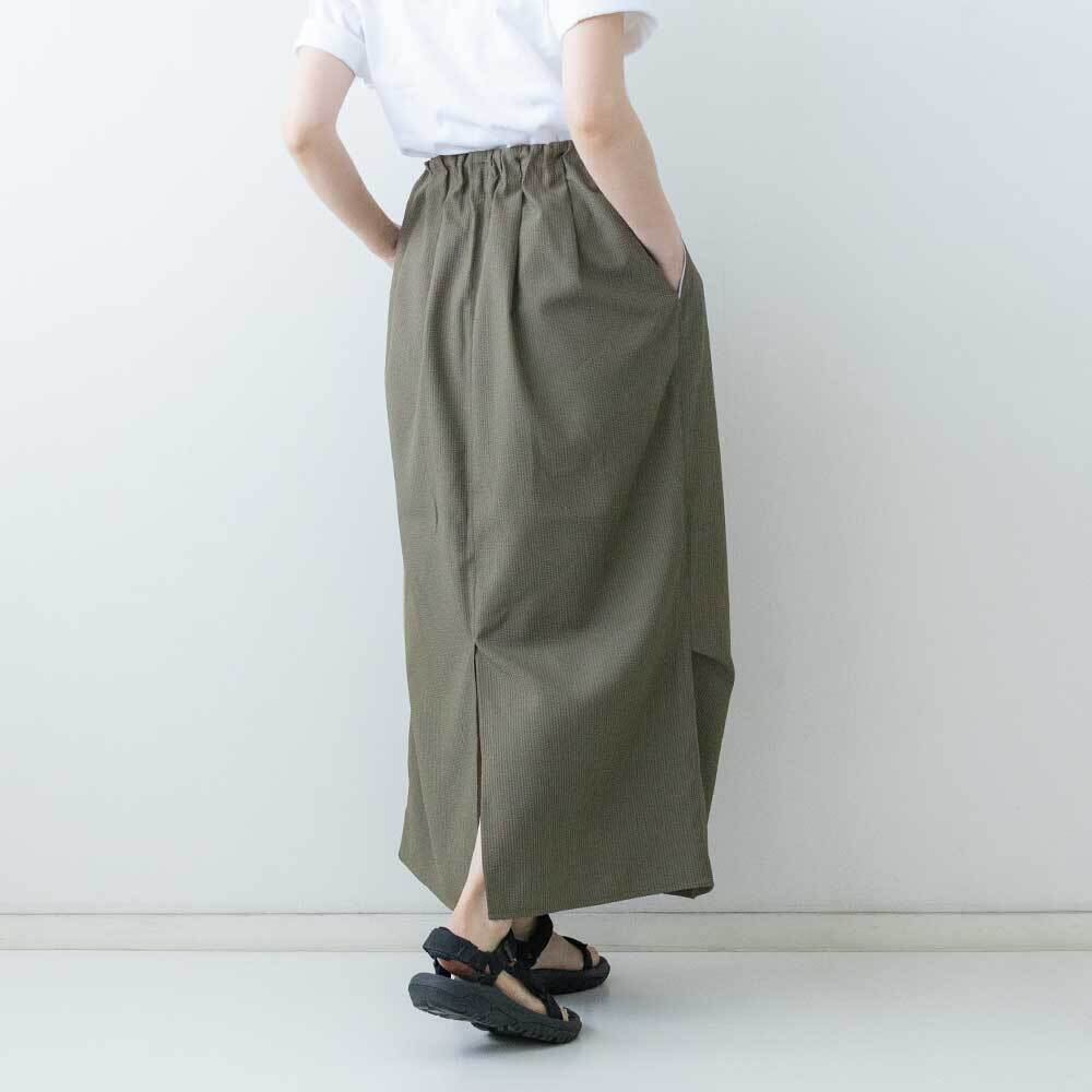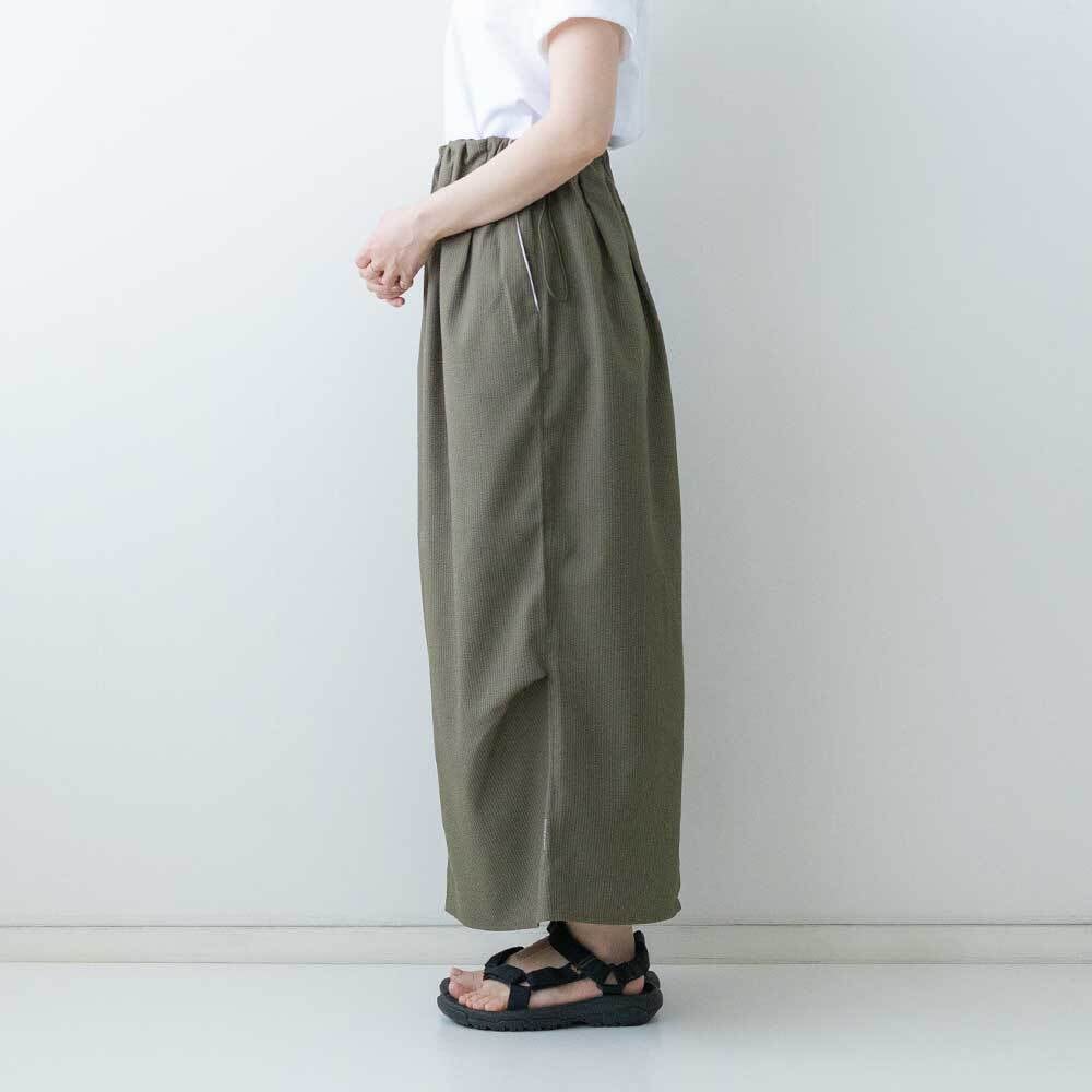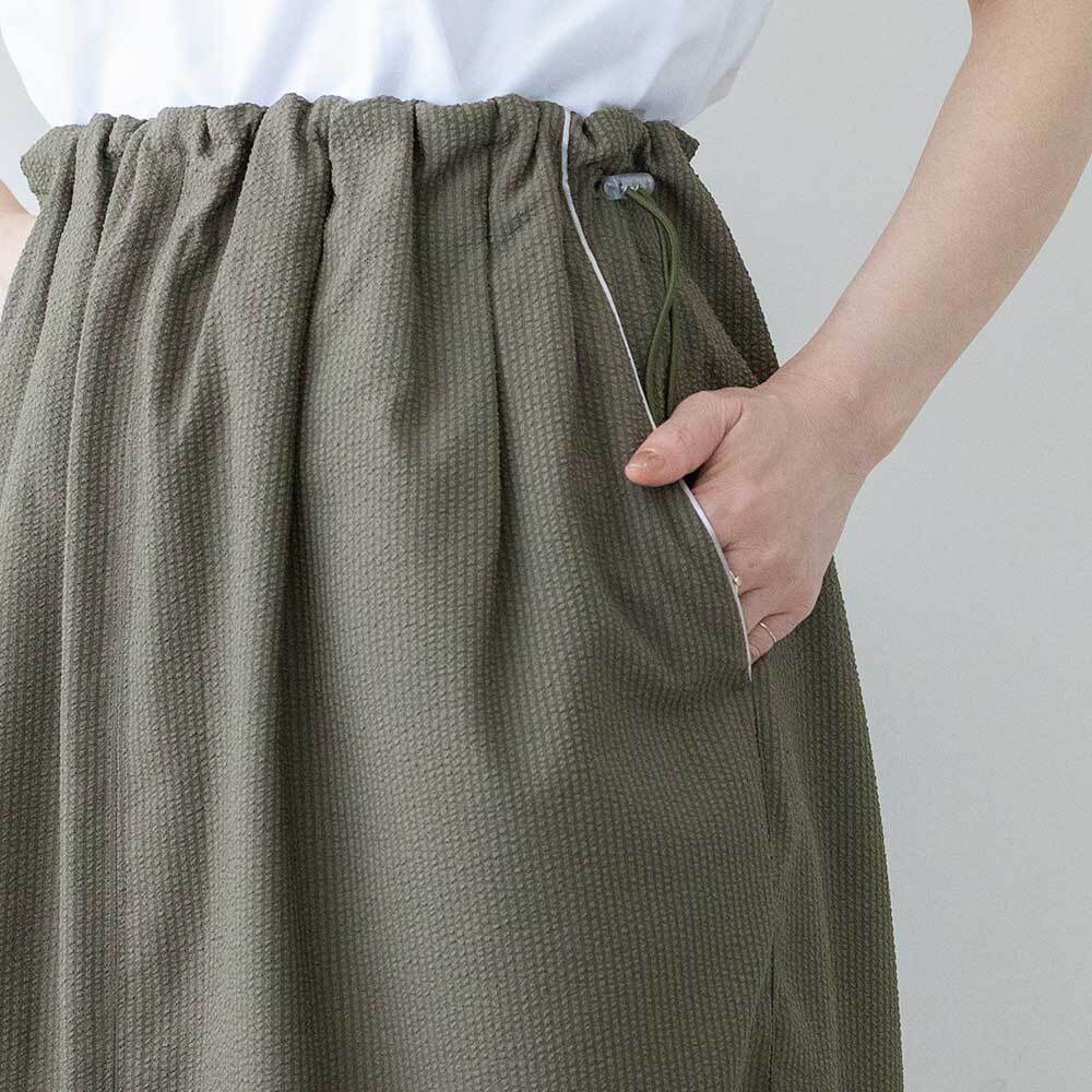 人気なタックトラウザーのウエストデザインを取り入れたドロストスカート。