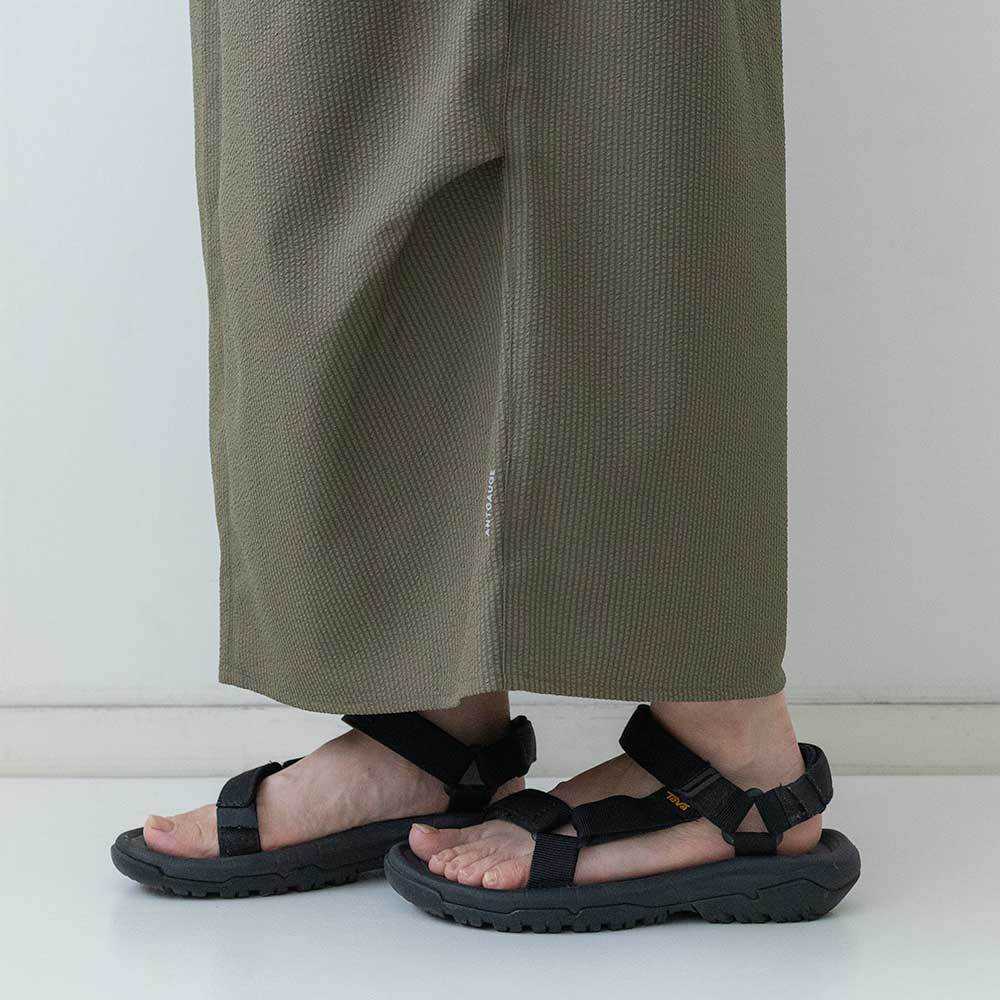 後ろ裾にはスリットを入れて足さばきを良くし、締め付け感がなく心地よく履いていただけます。