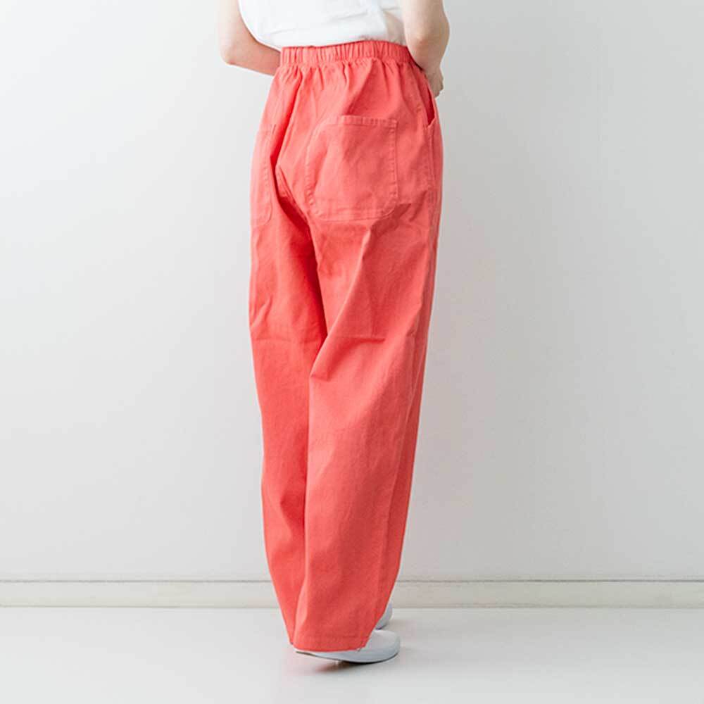 ウエストゴムのストレスフリーな履き心地ですが、裾にかけてすっきりしたシルエットで様々なアイテムに合わせやすい万能な1着。