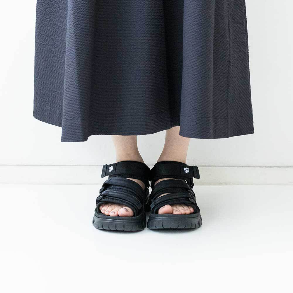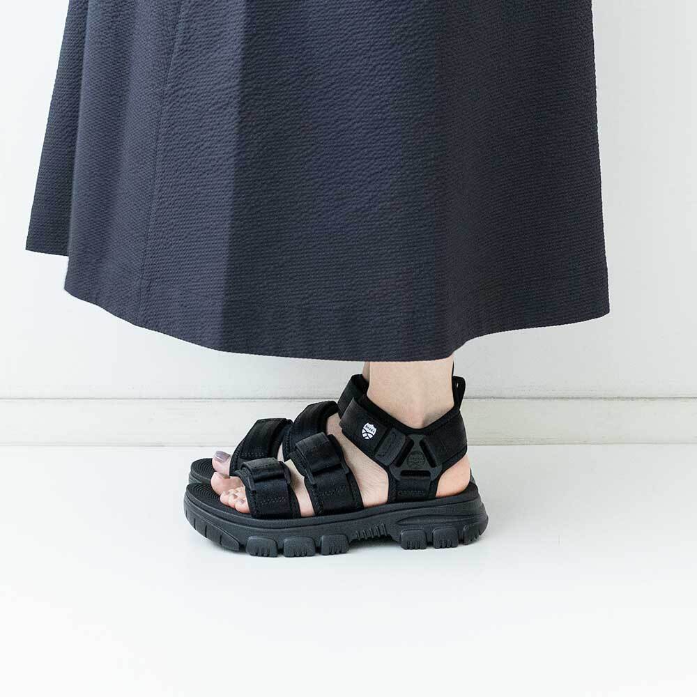 シートベルトタイプにアップデートさせたストラップの裏にはネオプレンがあしらわれ、靴ずれなどが起こりにくいのも特徴です。