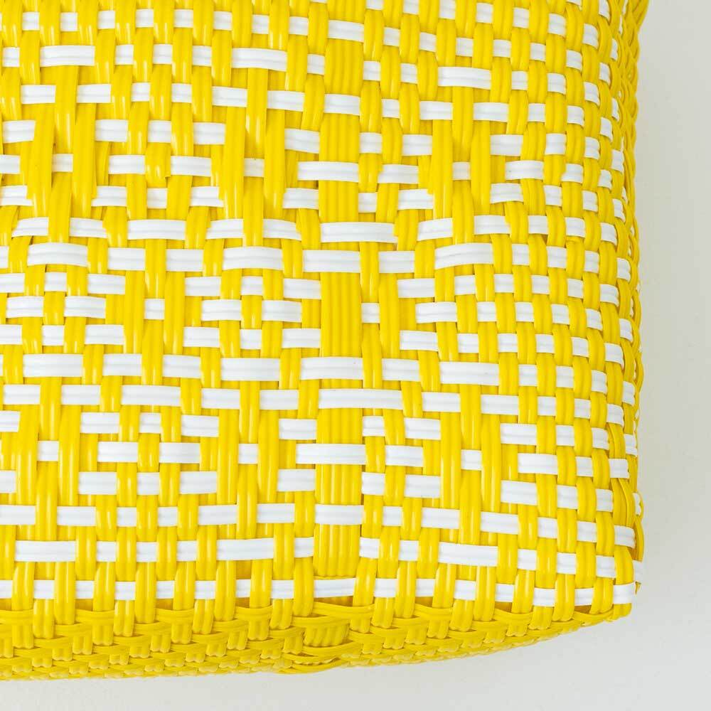 プラスチック製のコードを丁寧に編み込み、模様柄を表現しています。