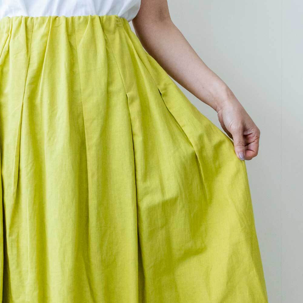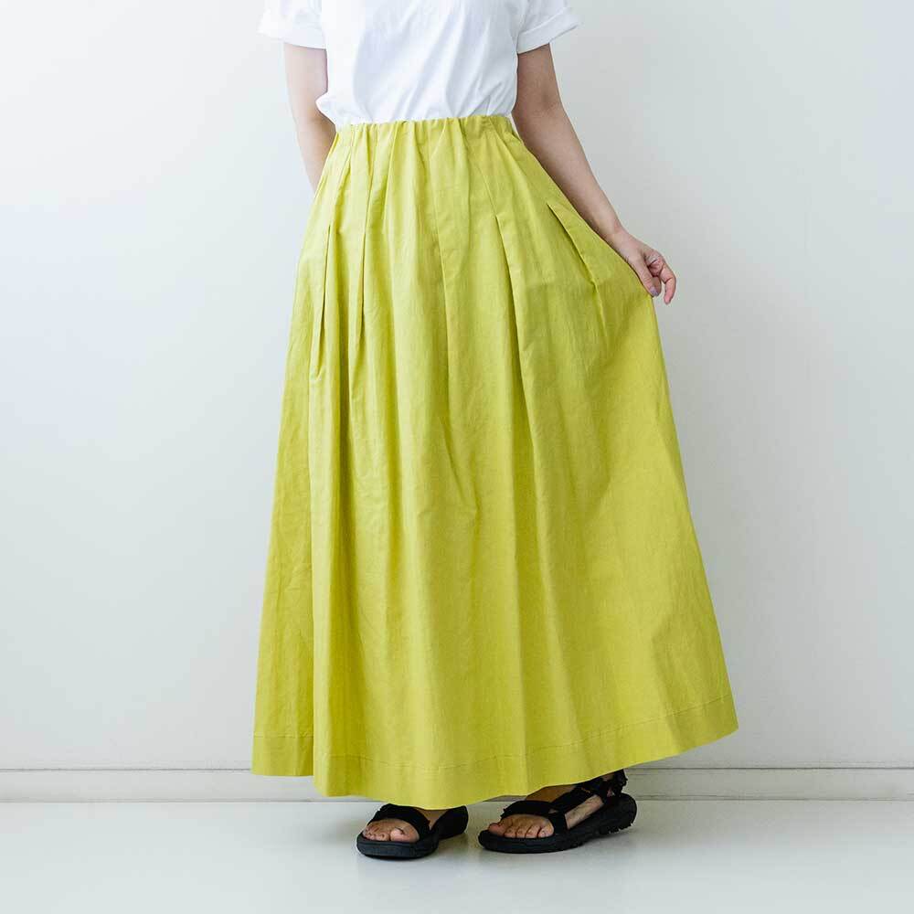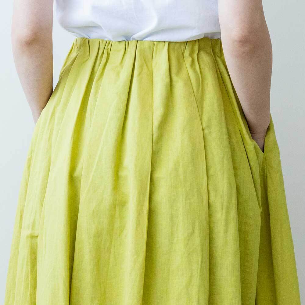 タックギャザーのデザインにすることで、楽なのにすっきりキレイに見せてくれるスカートです。