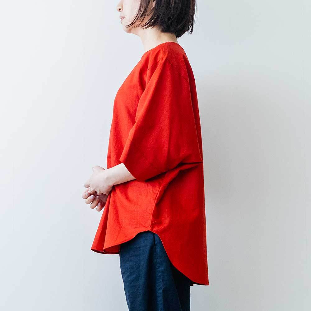 CLOCHE 綿麻5分袖ボタンプルオーバー
