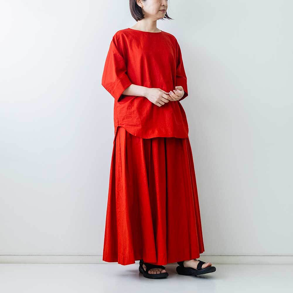 肘が隠れる丈で手首が出る長さもすっきりキレイに見せてくれる印象で、夏シーズンに大活躍すること間違いなしのトップスです。