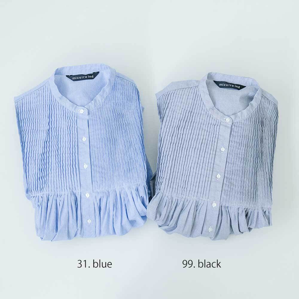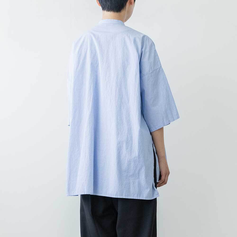 無地に見える細かな格子柄とピンタックが爽やかな着こなしを演出するスタンドカラーピンタックシャツ。