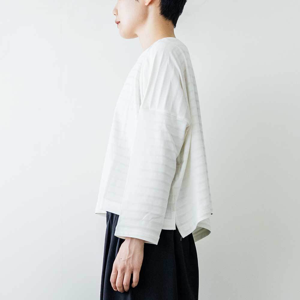 オパール加工(織物に透かしを入れる技法)を施したボーダー柄のプルオーバーです。