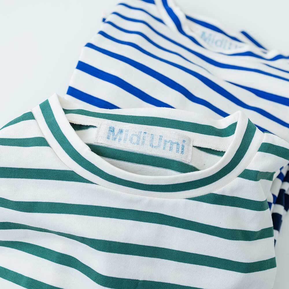 MidiUmi定番の、バスク調ボーダーボトルネックショートプルオーバー。