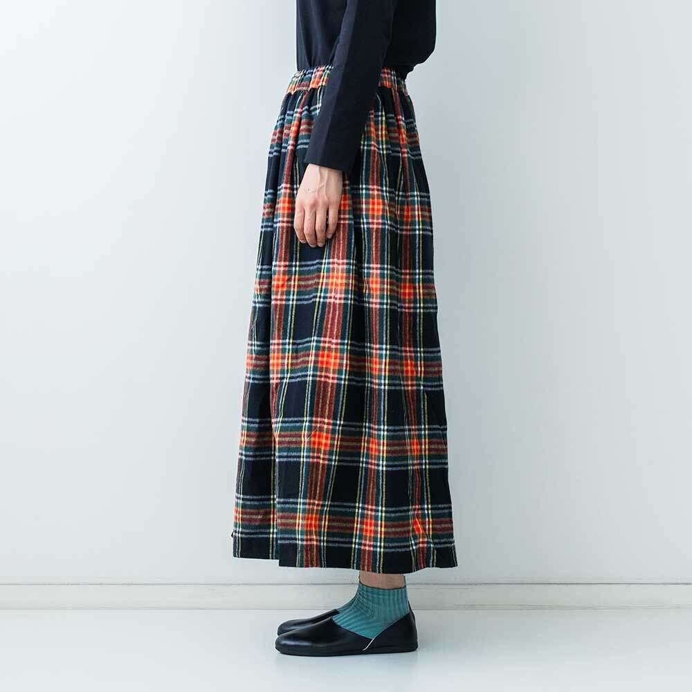 シャギーを使った起毛感がポイントのチェックギャザースカート。