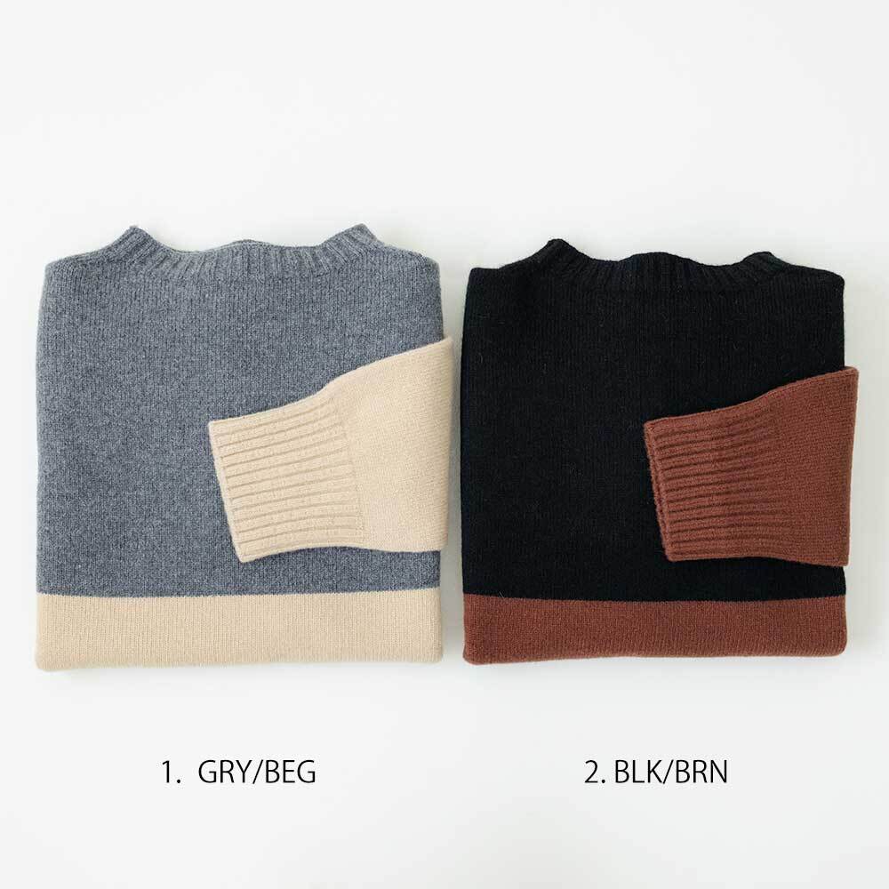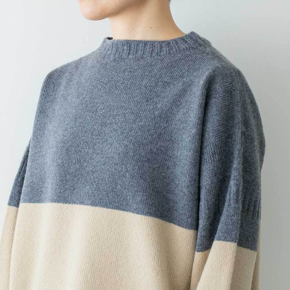 ゆったりとした柔らかなサイズ感を大胆なバイカラーでまとう美しいセーターです。