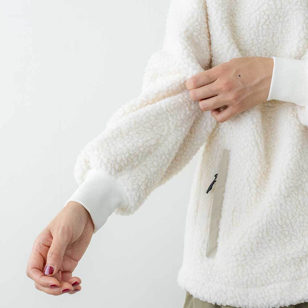 表地をボア素材、裏地をマイクロフリースのボンディング仕様にしたことで保温性も抜群です。