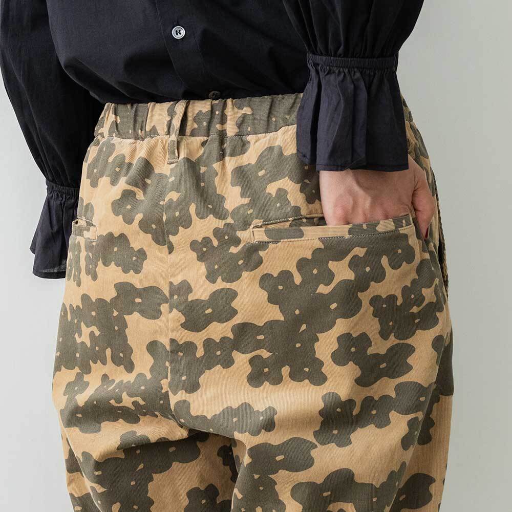 細畝のコーデュロイに、ORDINARY FITSオリジナルの花柄をプリントしたパンツです。
