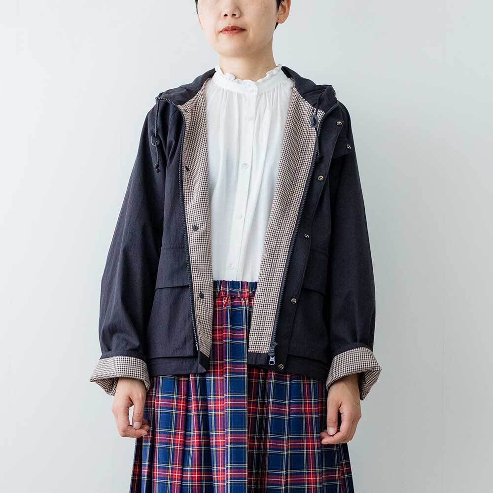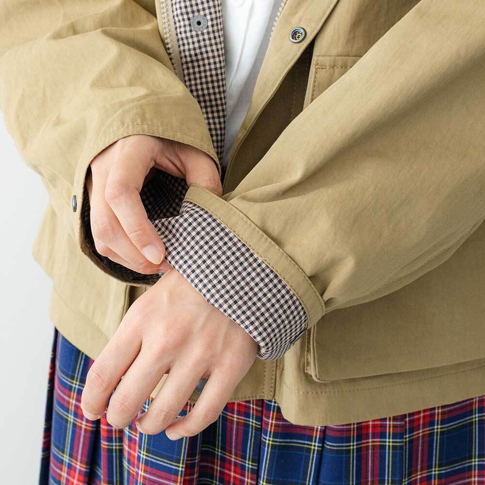 裏地にはチェックを使用し、見えたときや脱いだときにもキレイに見えます。
