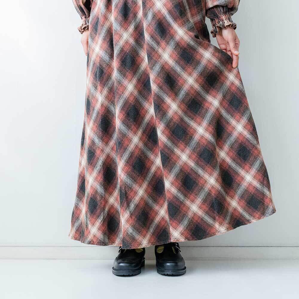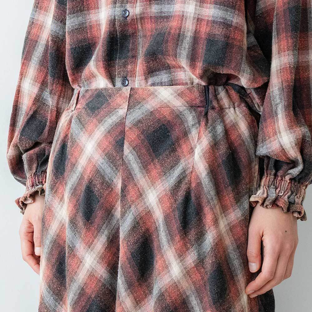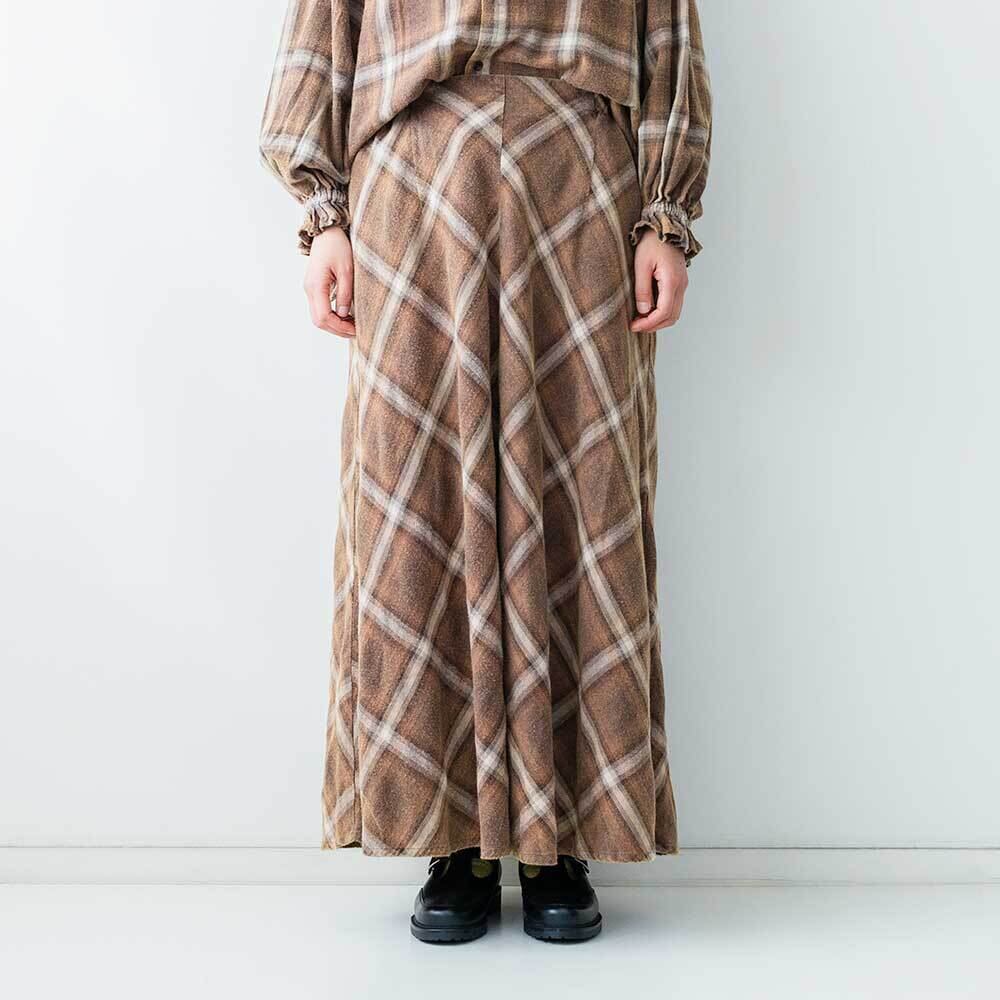 着込んだようなヴィンテージ感が特徴の、ネル素材のスカートです。