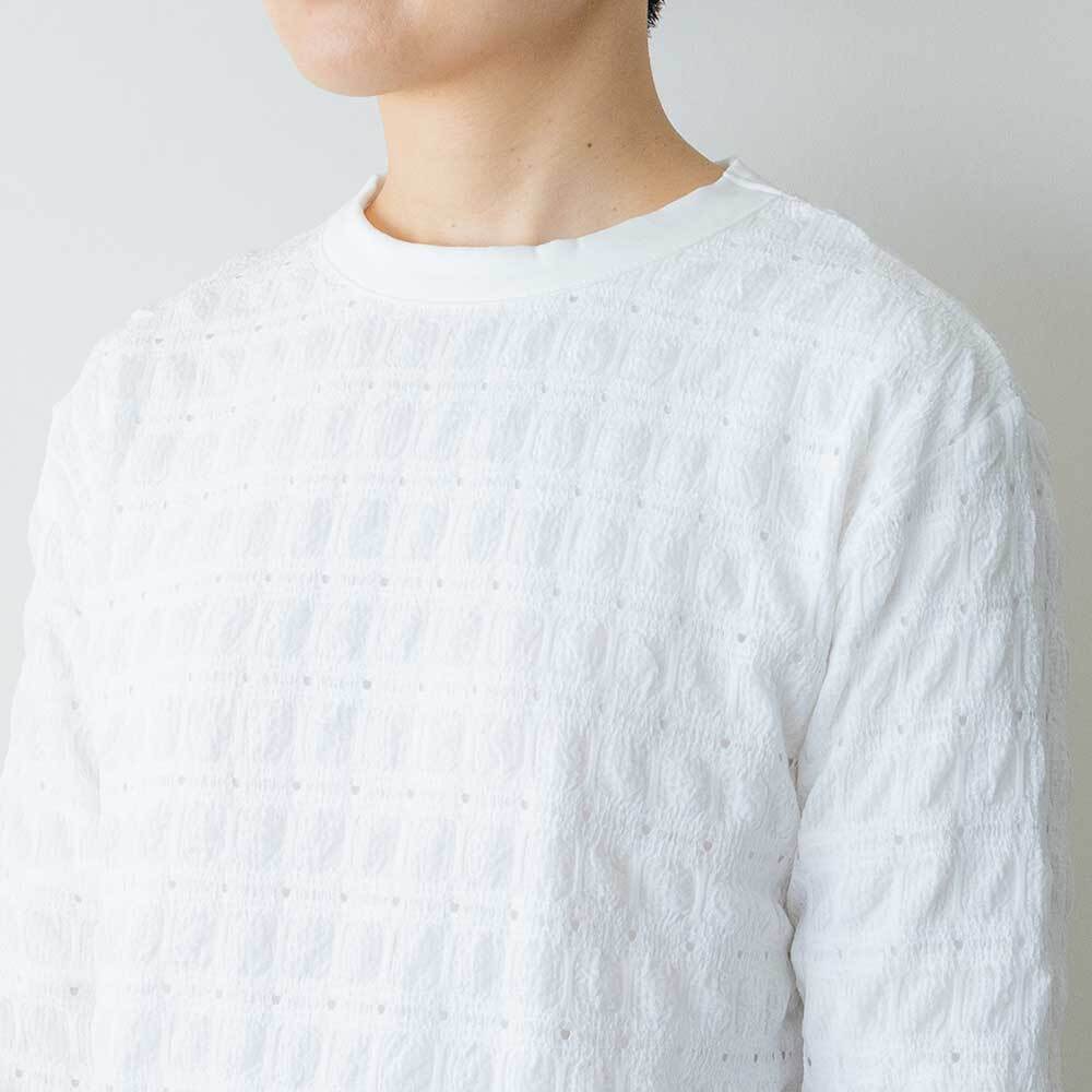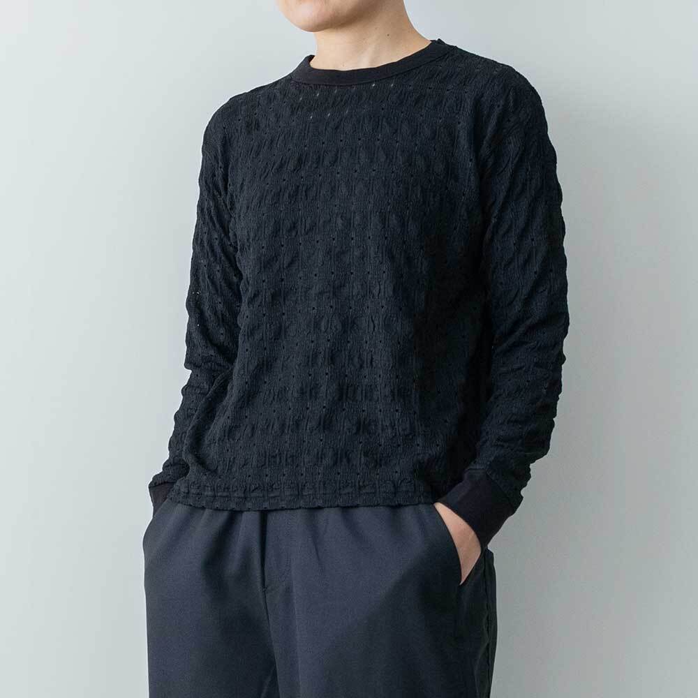 立体感のあるぽこぽことしたシアー素材を使用したロングTシャツです。