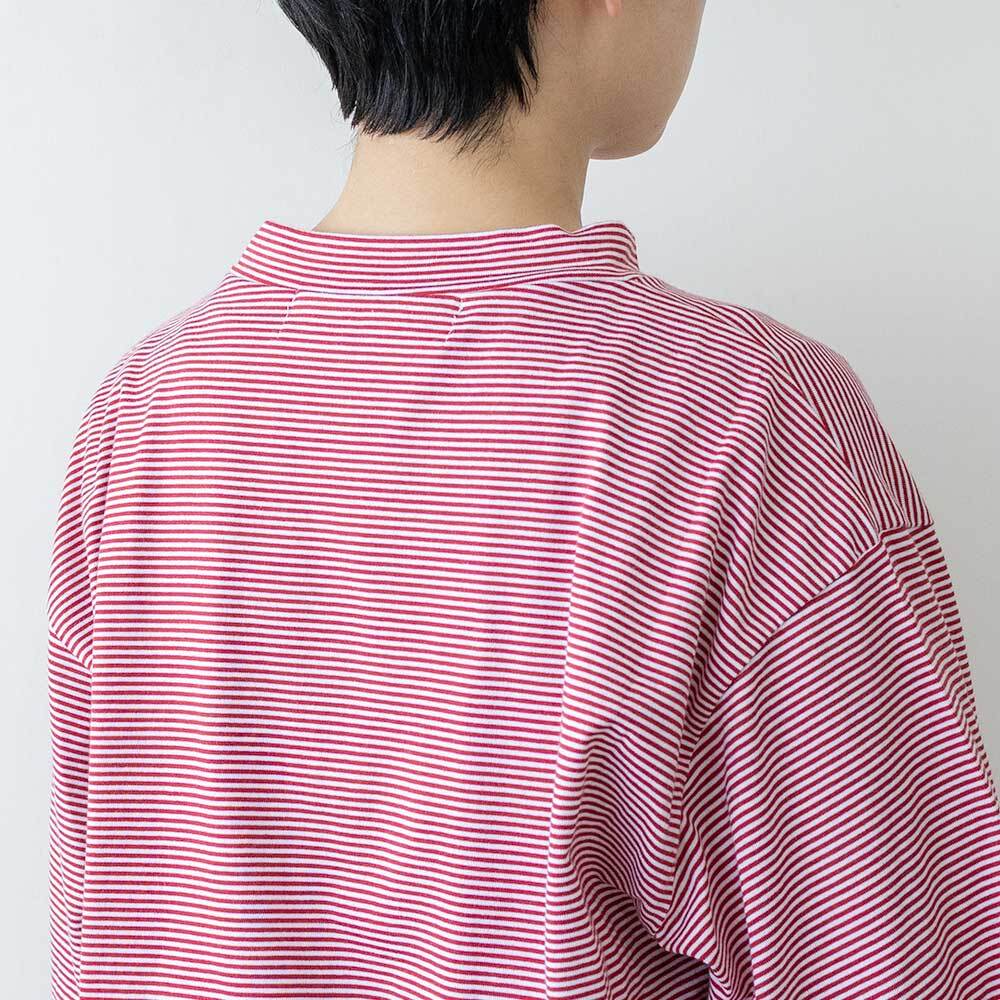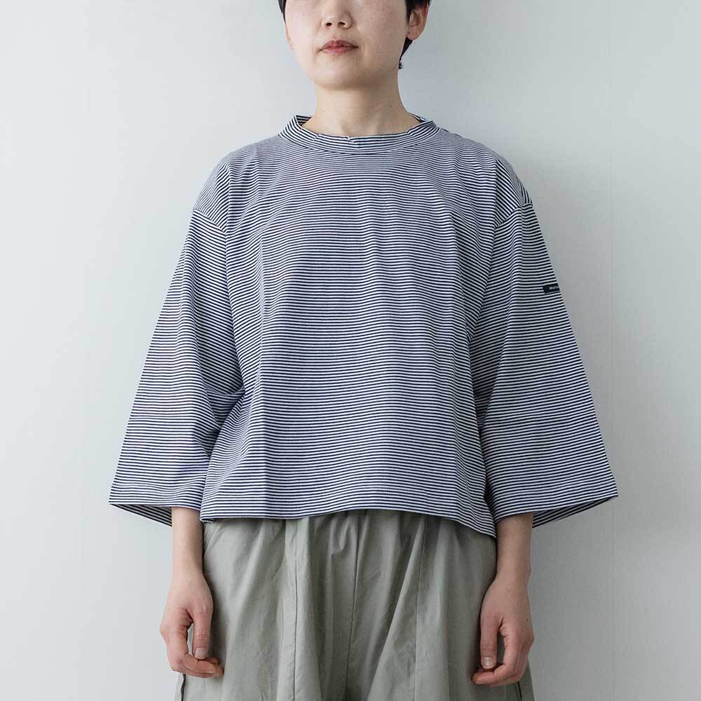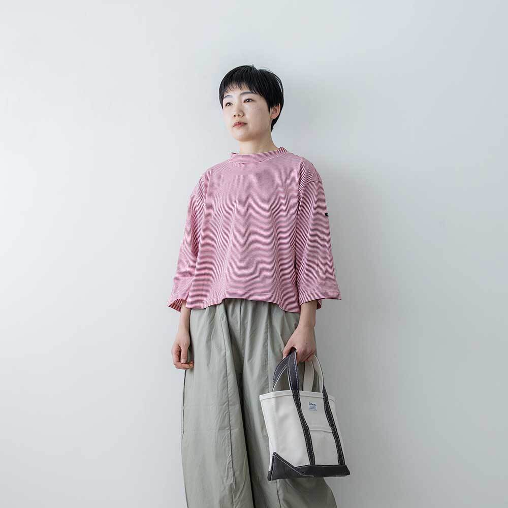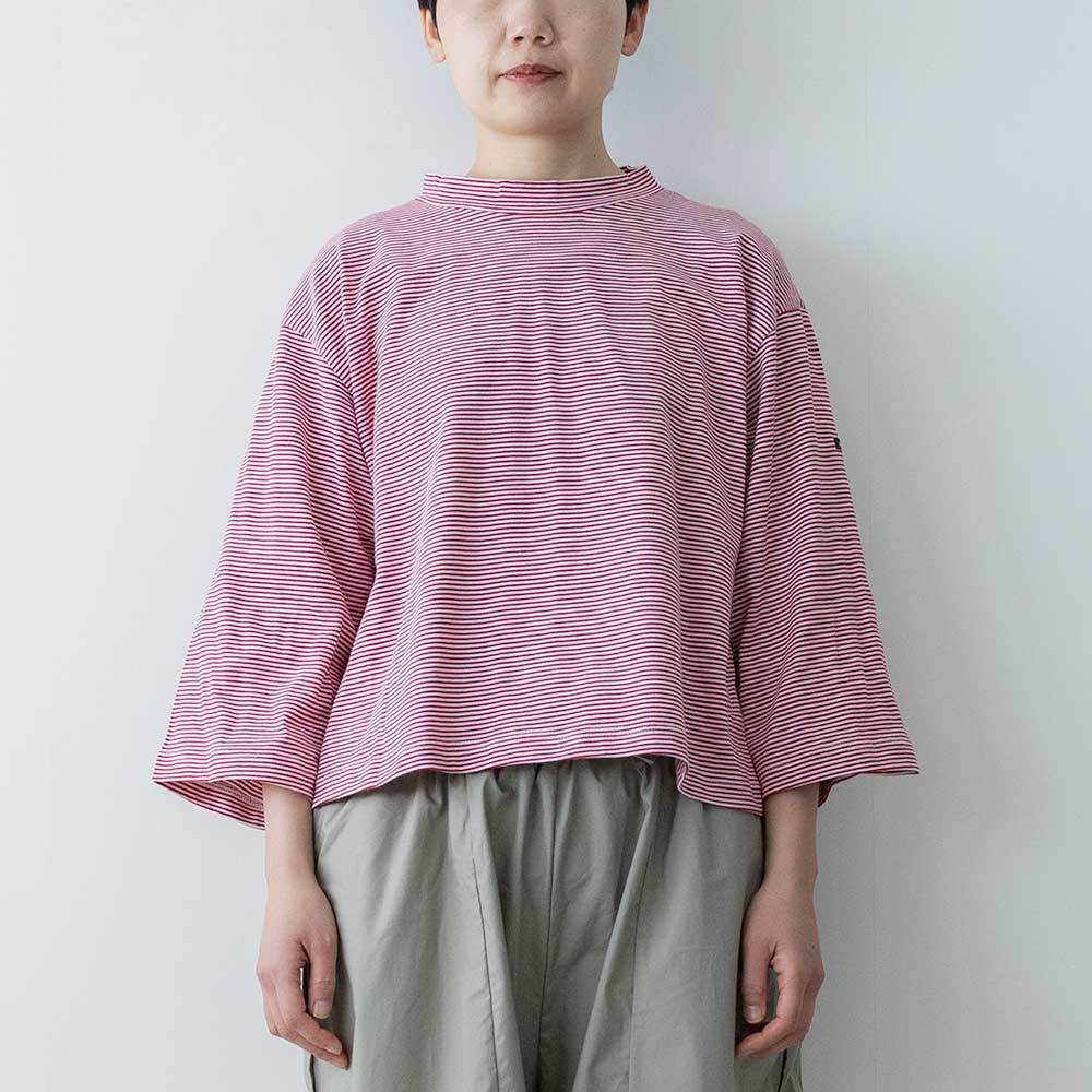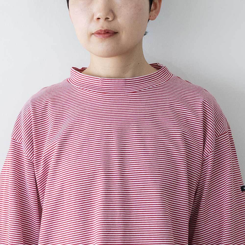40双天竺を使用したモックネックボーダーワイドTシャツです。