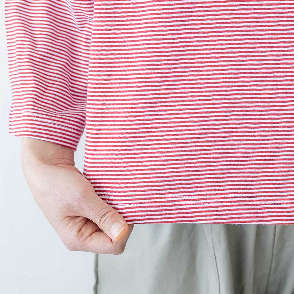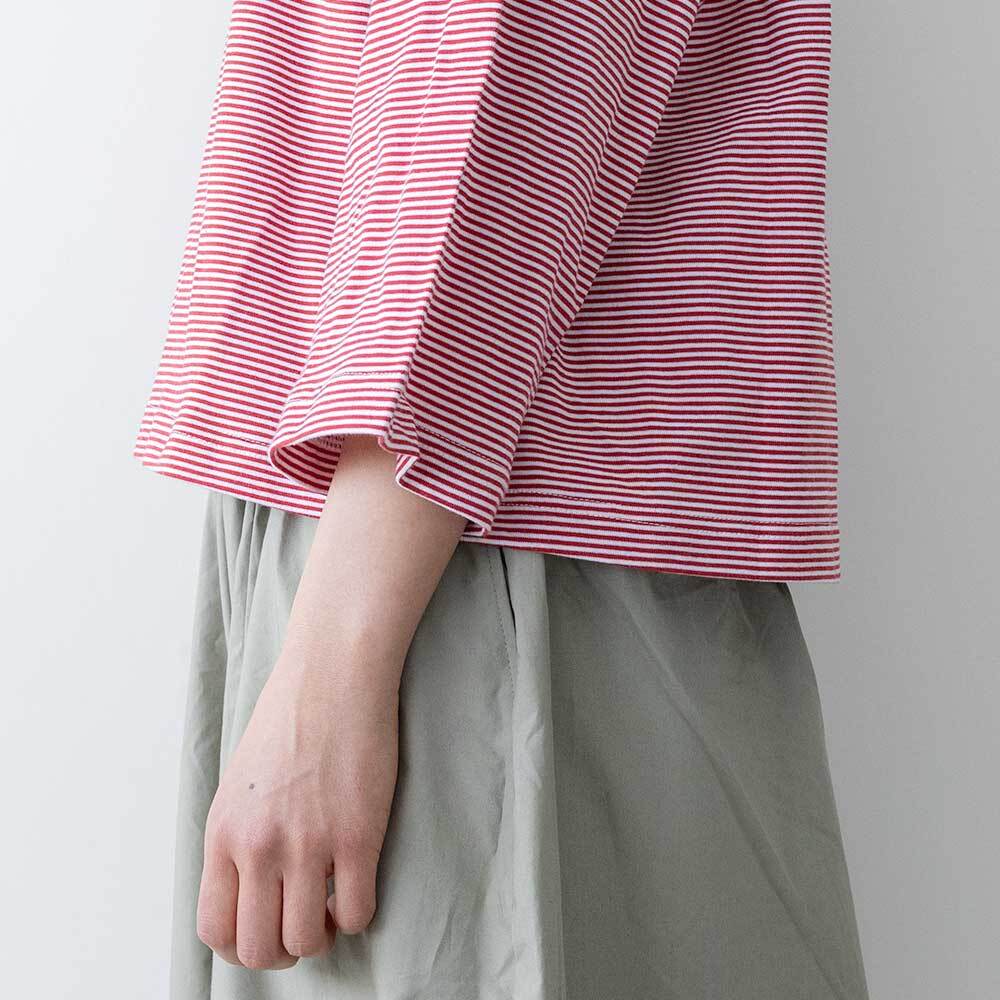 細ピッチのボーダー7分袖でスッキリとした丈感になっているので、カジュアル感もありながら清楚な雰囲気が魅力です。