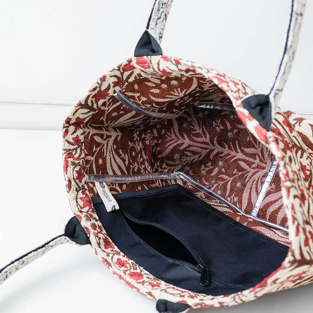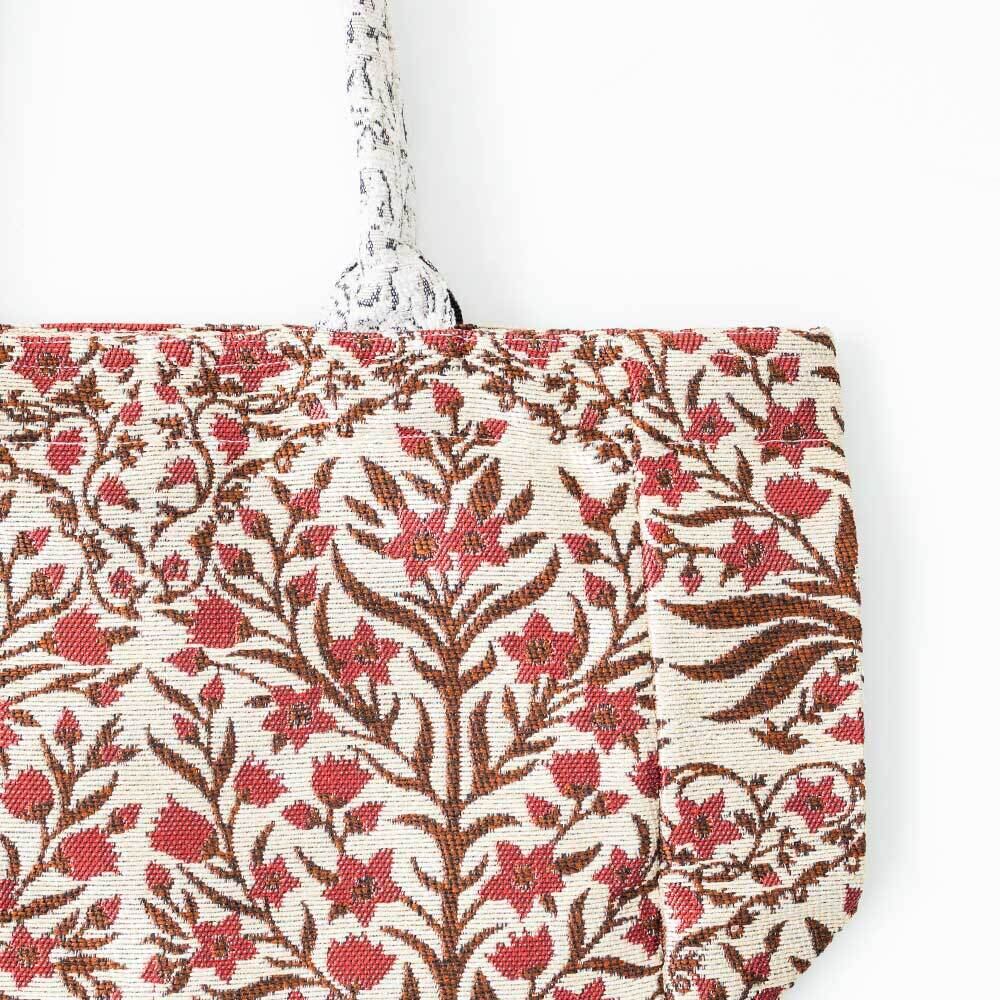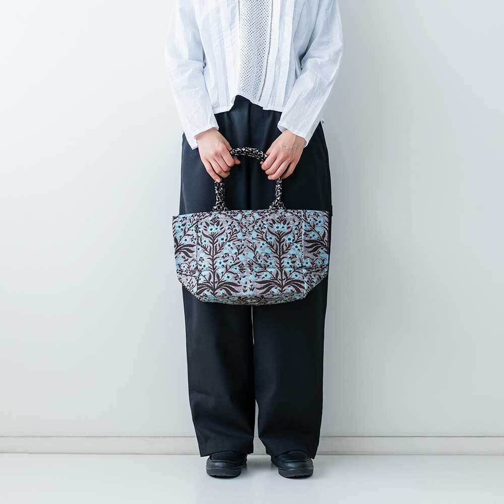 繊細な小花が全面にデザインされたボタニカルジャカード柄のトートバッグです。